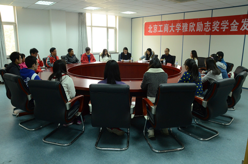 11月26日,雅欣励志奖学金发放仪式在良乡校区举行。北京梁氏聚鑫文化交流发展有限公司总经理梁雅欣女士、学生处资助中心主任徐红京、商学院党总支副书记褚才宽出席仪式。仪式由学生处资助中心李娜主持。