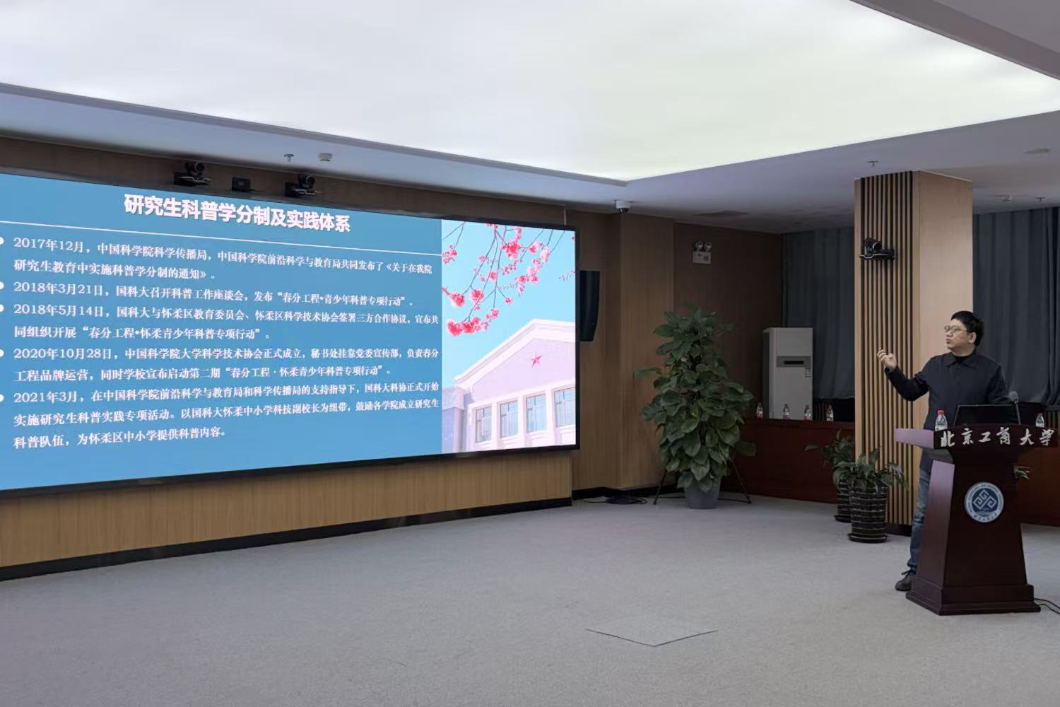 吴宝俊结合自身多年来开展数百场科普讲座的经验,系统阐述了中国科学院在推动高端科研资源向社会公众开放、转化过程中的理念与路径,重点介绍了中国科学院大学充分调动研究生群体、实施“春分工程”的实践经验。他谈到,为保障科普活动顺利实施,国科大成立科协,并将“春分工程”品牌运营、研究生科普学分制的落实,以及与之配套的社会实践体系建设作为主要抓手。国科大自2021年正式实施“春分工程”研究生科普实践专项活动,由国科大各学院组建研究生科普队伍,安排专家对在读研究生进行科普培训,并以怀柔区中小学为实践基地,广泛组织在读研究生服务中小学科学教育。至今,“春分工程”已从怀柔区拓展至全市100多所中小学、科技场馆和社区,开展科普报告或直播上万次,形成了可持续、规模化、机制化的科普实践模式。
