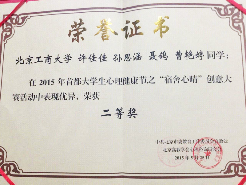 近日,2015年首都大学生心理健康节圆满落幕。外国语学院学生在比赛中表现突出,获得首都大学生心理健康节获北京市二等奖。
