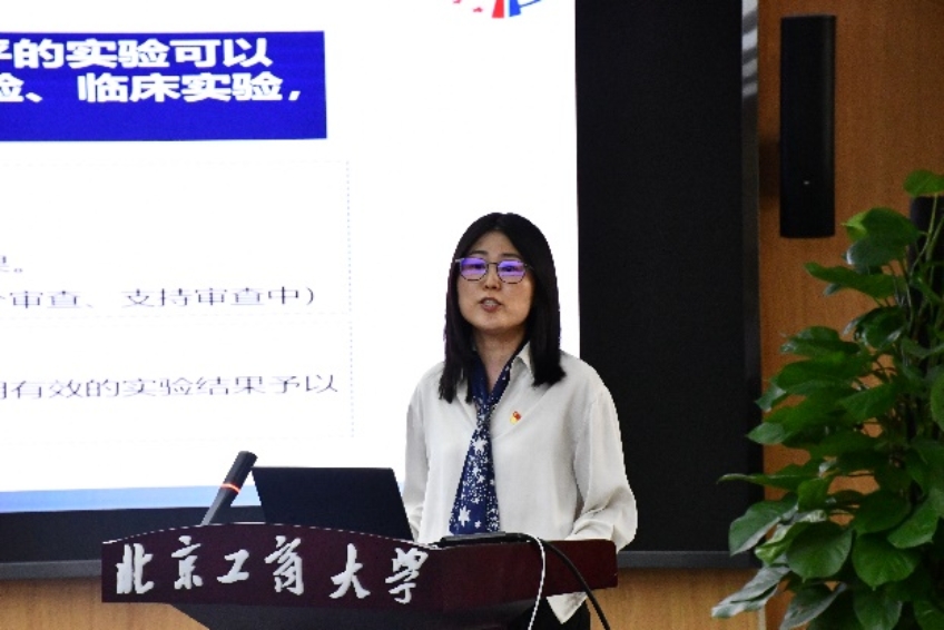 国家知识产权局医药生物部中药三处副处长陈少君以“学思想,强党性,重实践,建新功”为题,介绍了创建“四强”党支部的做法,展示了“智汇沙龙”“医心向党”等特色品牌,彰显了机关党建走在前、作表率的成效。