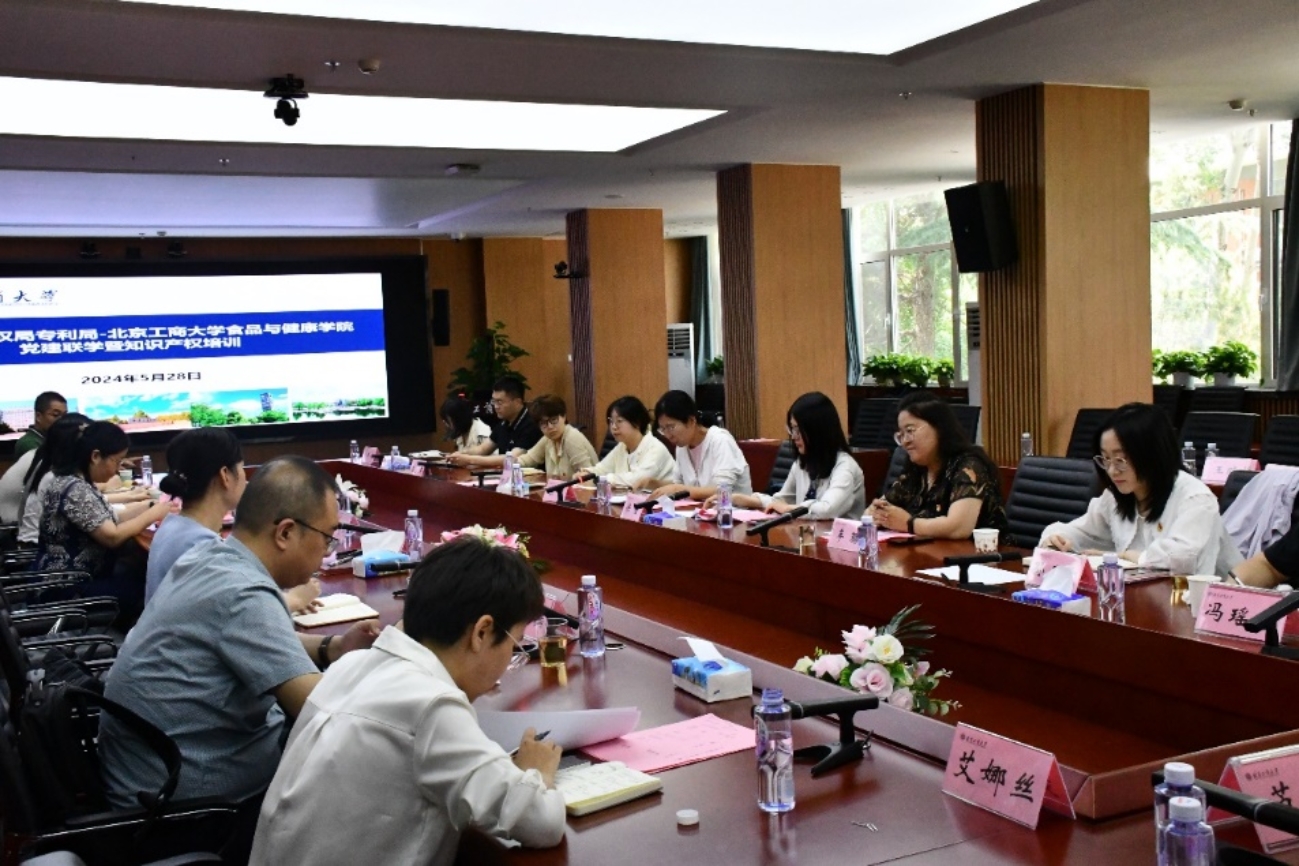 为加强党建对学院事业发展的引领推动作用,5月28日,食品与健康学院特别邀请国家知识产权局专利局医药生物部赴学院开展党建联学活动暨知识产权培训。国家知识产权局医药生物部食品工程处处长陈矛、质量保障处二级巡视员刘俊香、食品工程处一级调研员石军、学校科研院自然科学处副处长王学丽、食品与健康学院院长王彦波以及国家知识产权局专利局医药生物部的专家及学院教师共55人参加了本次活动。活动由学院党委书记郑喜姣主持。
