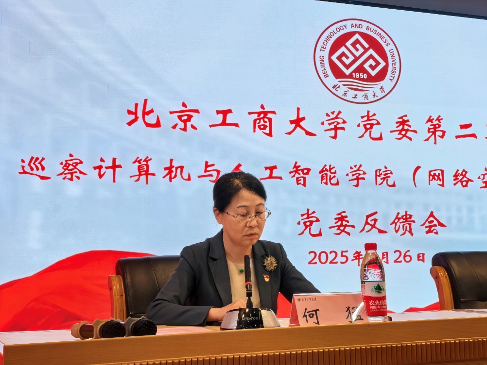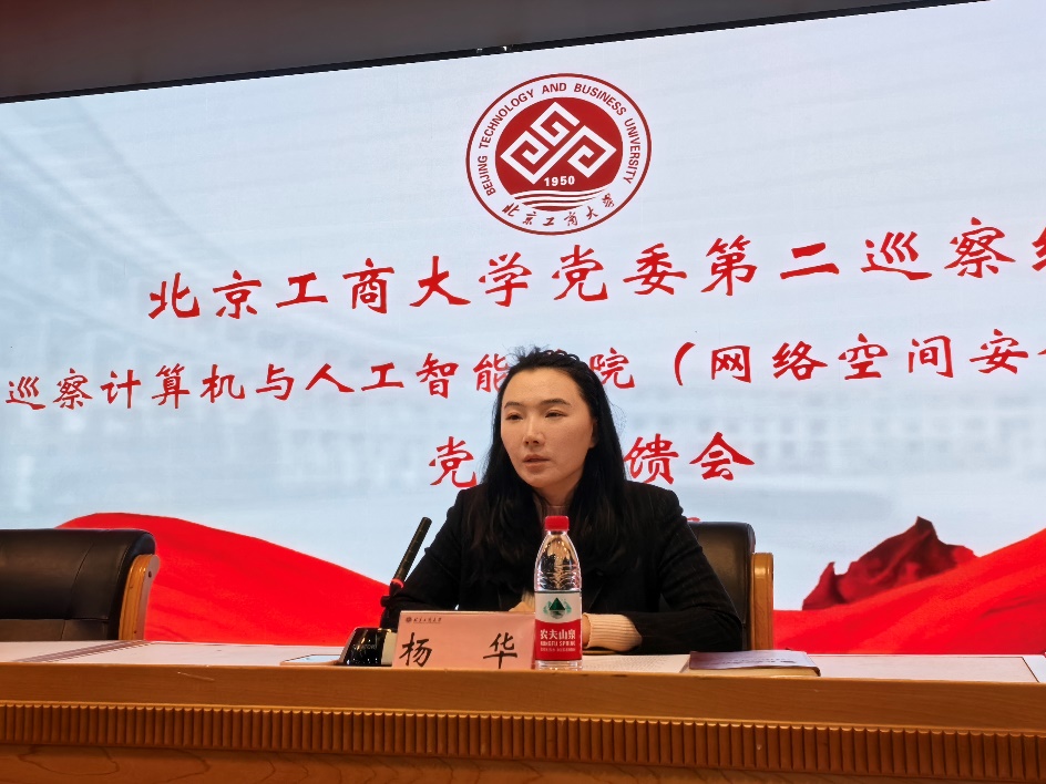 杨华代表第二巡察组反馈巡察情况。计算机与人工智能学院(网络空间安全学院)党委坚持以习近平新时代中国特色社会主义思想为指导,认真落实上级和学校党委决策部署,在党的建设、学科建设、人才培养、科学研究等方面取得了一定成绩。对照新形势新任务新要求,巡察也发现了一些问题,主要是:学院在支部理论学习与教学科研结合不够紧密;学院对于推进“工商一体化”、促进“智能+商”、“智能+工”学科交叉的工作力度不够;楼宇功能布局和实施方案亟需论证等等。巡察组也相应的提出了整改意见:要坚持和加强党的全面领导,持续推动“一融双高”建设,狠抓全面从严治党“两个责任”落实,抓好整改落实,做好巡察“后半篇文章”。