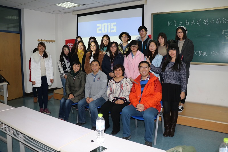 宣讲会结束后,部分同学与四位老师互动,请教了大赛中的有关问题,并与老师们合影留念。在宣讲会开始前,本次大赛的承办方之一:北京工商大学营销与公关协会还召开了成立大会,会上公布了原“北京工商大学公共关系协会”更名为“北京工商大学营销与公关协会”的消息,阐述了新老协会的传承关系。新老社员亲切交流,庆祝社团更名,并商讨了社团未来活动及发展计划。