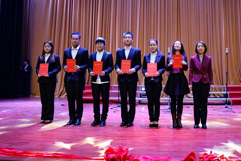 杨秀萍宣读了表彰决定,与会领导和老师为获得先进班集体、先进个人、优秀学生奖学金的学生代表颁奖。国家奖学金获得者机械124班陈峰代表获奖学生发言,他分享了自己大学三年多的学习经历,倡导大家学好专业知识,积极参与科技创新,成为有理想、有本领的当代大学生。