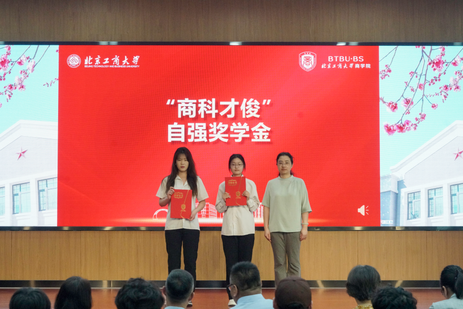 与会嘉宾为获得商科才俊专业优秀奖学金、学术科技奖学金、优秀实习实践奖学金和自强奖学金获奖者进行了颁奖。