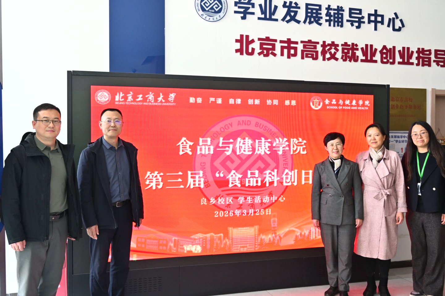 3月25日,食品与健康学院第三届“科创日”活动在良乡学生活动中心火热开展。活动以“科技赋能健康,创新引领未来”为主题,紧扣“工商一体化”、产教融合育人导向,通过项目路演、专家点评、答辩竞技、互动交流等环节,集中展示学院食品科技与大健康领域创新成果。清创汇智创新创业研究院理事雷达、清汇创投研究员闫琳、幸福华商董事总经理李谦、华宇科创投资合伙人邵玙曦、君屹资本运营总监肖松权、中国农业大学就创办朱光森等嘉宾担任特邀评委专家。学院领导班子成员和各系教师代表亲临现场观摩指导。