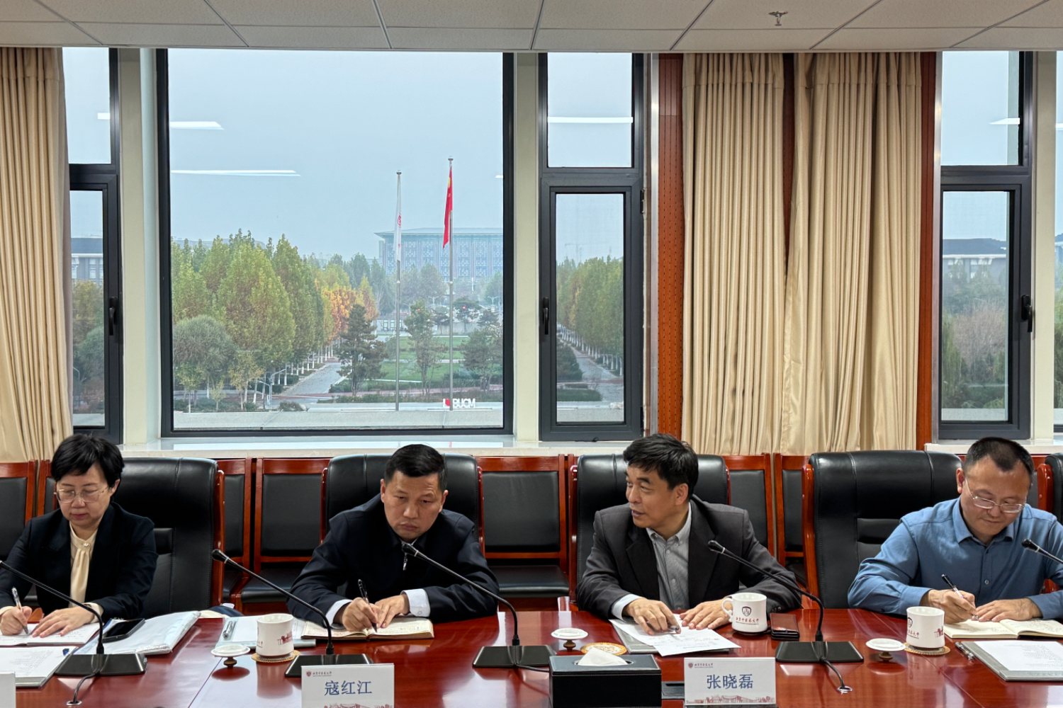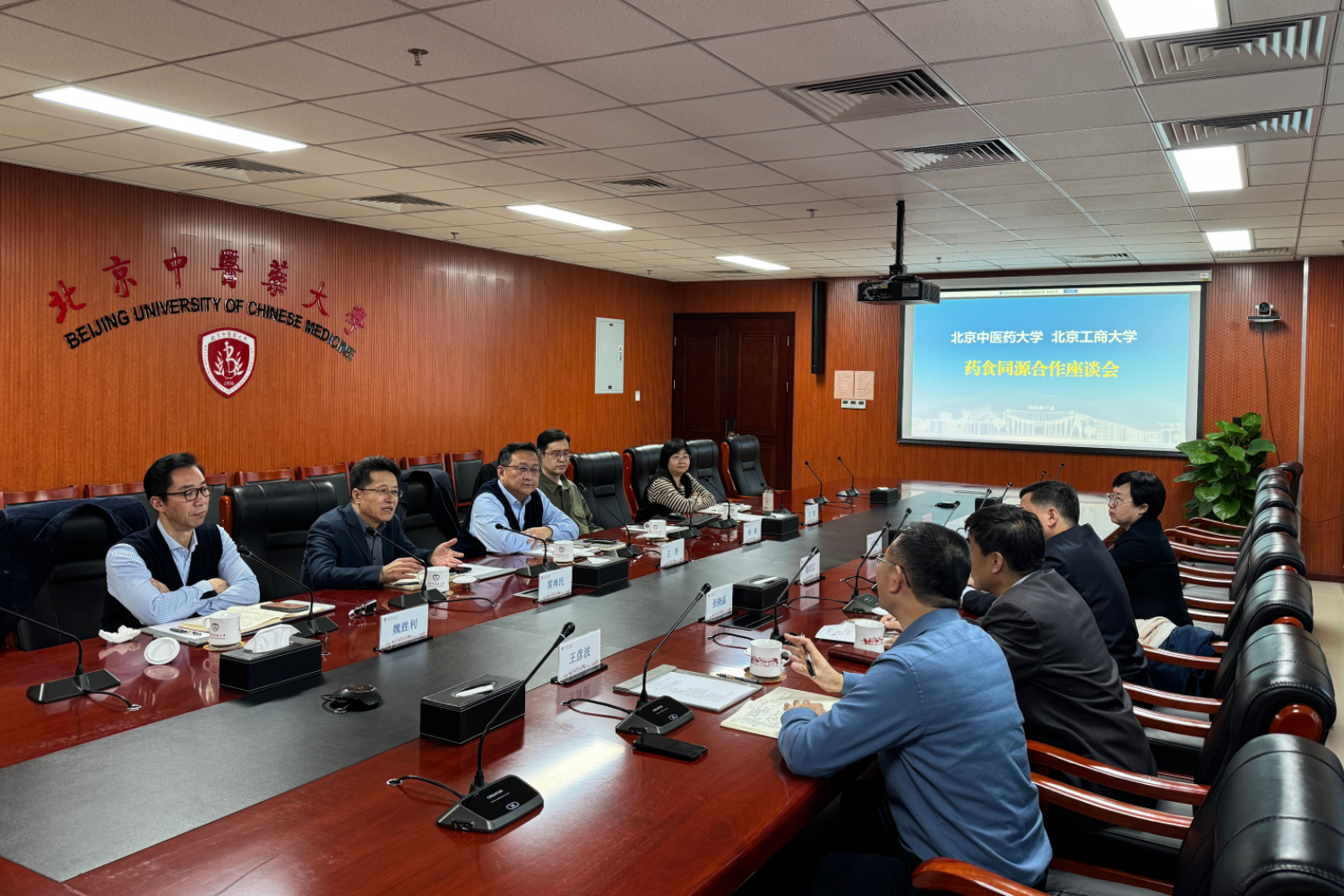 11月11日,为深化北京高校间合作、共同推动食药同源理念和实践的创新发展,党委常委、副校长寇红江率队赴北京中医药大学学习交流,探讨双方在食药同源领域的合作事宜。北京中医药大学党委常委、副校长王停主持会议,中药学院党委书记傅骞、院长雷海民、副院长魏胜利,学校党政办副主任王慧参加。