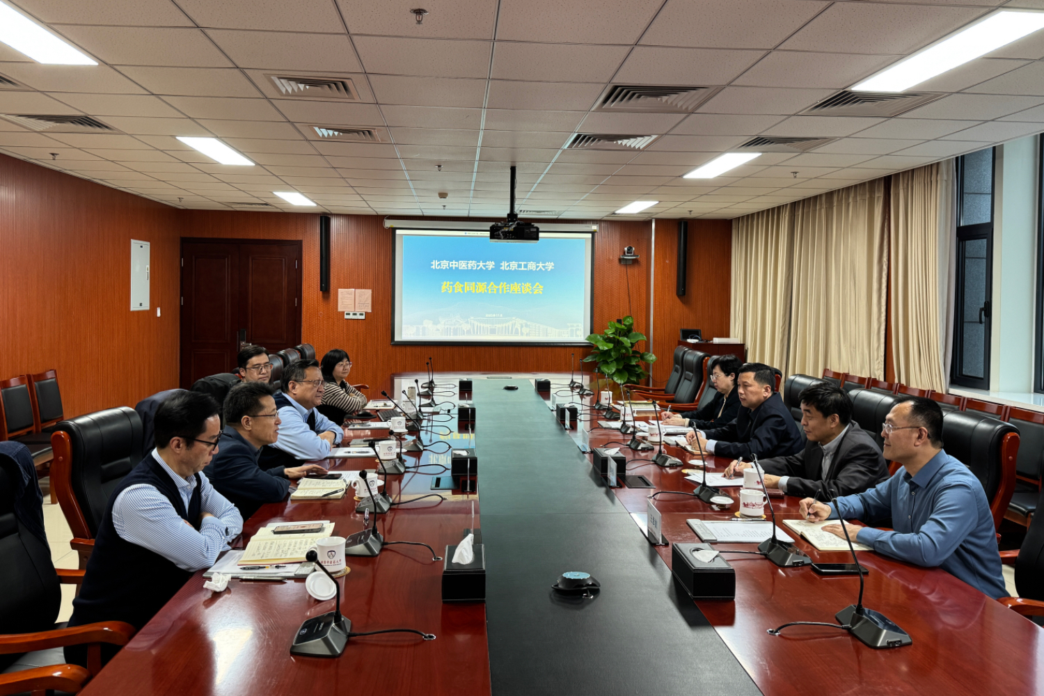 双方领导在总结讲话中高度评价本次食药同源合作座谈会的成效,一致认为此次座谈高效务实、成果丰硕,成功开启了两校战略合作的新篇章。双方同意,应立足服务“健康中国”建设的战略高度,以本次学习交流会为契机,充分融合北京工商大学在食品科学与工程学科领域的科研优势与北京中医药大学在中药中医理论与实践方面的深厚积淀,围绕食药同源开展深度合作,立足于国家战略,共同产出若干具有显著产业影响力和社会价值的标志性成果,为推动食药同源理念的创新发展和健康中国战略的落地实施贡献在京高校的智慧与力量。