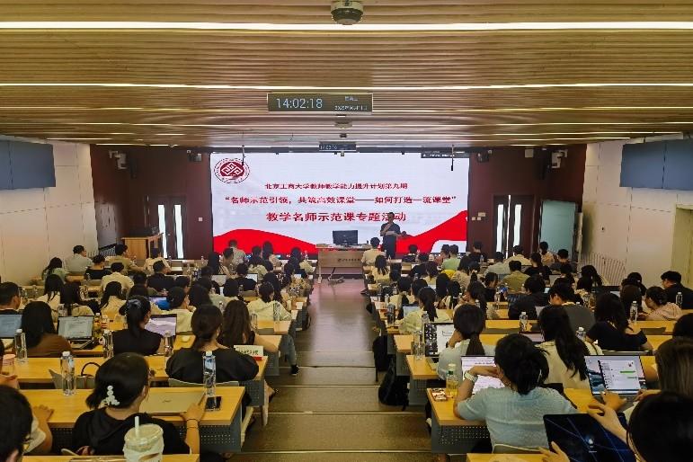 为深入推进我校“本科教育教学大讨论”工作走深走实,全面落实立德树人根本任务,积极响应“工商一体化,奋进双一流” 的高质量人才培养发展战略,充分发挥教学名师的示范引领作用,全面提升课堂教学效能,赋能教师打造具有高阶性、创新性与挑战度的“一流课堂”,6月11日,学校在良乡主校区举办了2025年度教师教育教学能力提升计划第九期专题活动。本期活动以“名师示范引领,共筑高效课堂——如何打造一流课堂”为主题,邀请校内外四名北京市高等学校教学名师为全校教师带来教学示范课程。教务处处长王鲁娜、计算机与人工智能学院(网络空间安全学院)执行院长李海生参加活动,各教学单位近五年新进教师线下观摩,活动现场同步通过腾讯会议进行全程线上直播。活动由教务处副处长熊科主持。