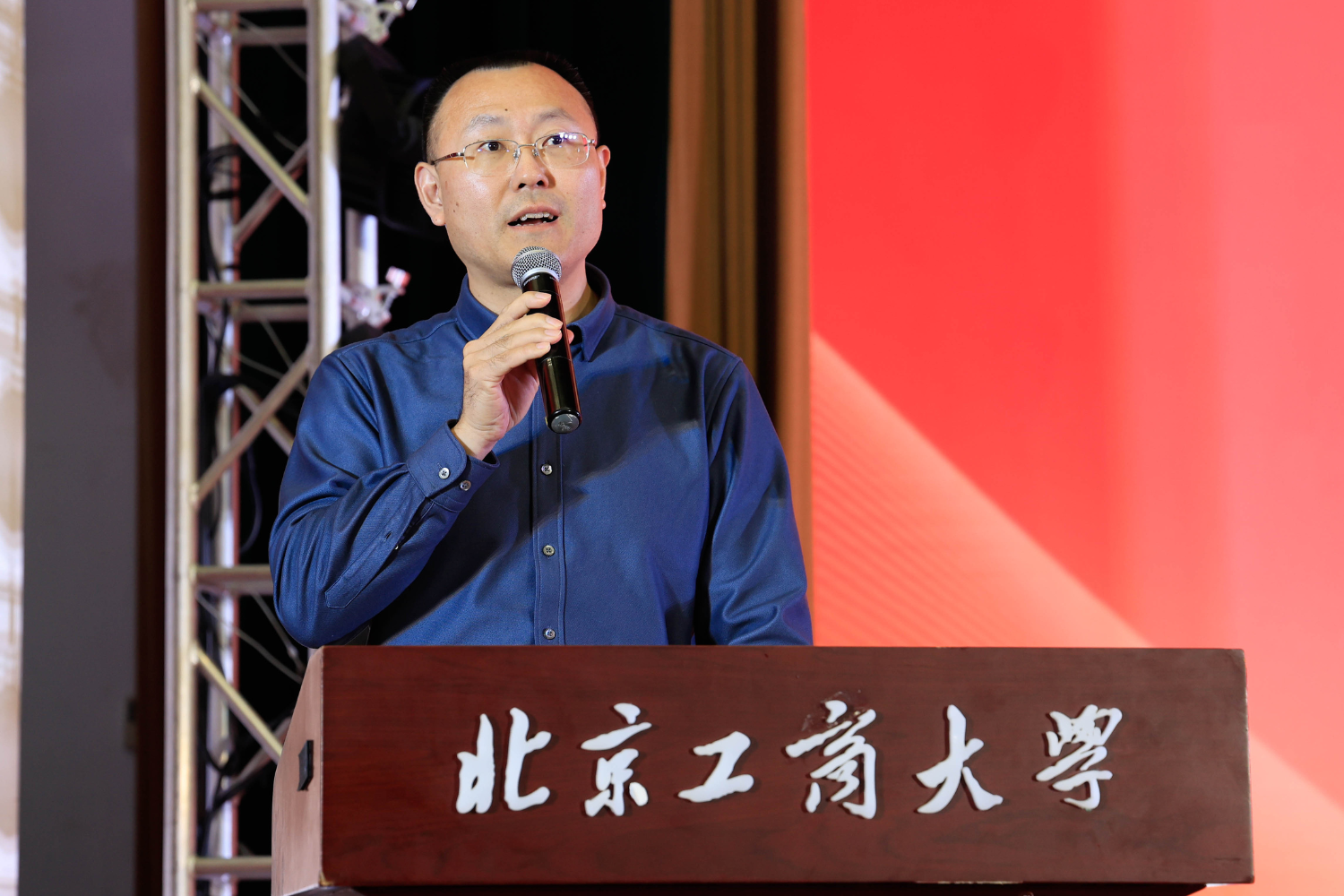 北京味食源食品科技有限责任公司董事长助理兼研发总监、北京市劳动模范严江在发言中首先向获奖学生表示热烈祝贺,并对学院的培养致以敬意。他回顾了自2011年设立“味食源奖学金”以来与学院在人才培养方面的合作历程,强调食品行业的生命力在于创新,而创新的根基在于人才。他分享了两点心得:保持对“味道”的敬畏,让创新兼具科技与温度;坚守对“创新”的执着,勇于在解决实际问题中实现价值。严江表示,公司将持续深化与学院的产学研合作,提供更多实践平台,共同推动食品行业高质量发展,并祝愿学子们学业有成,学院再创佳绩。