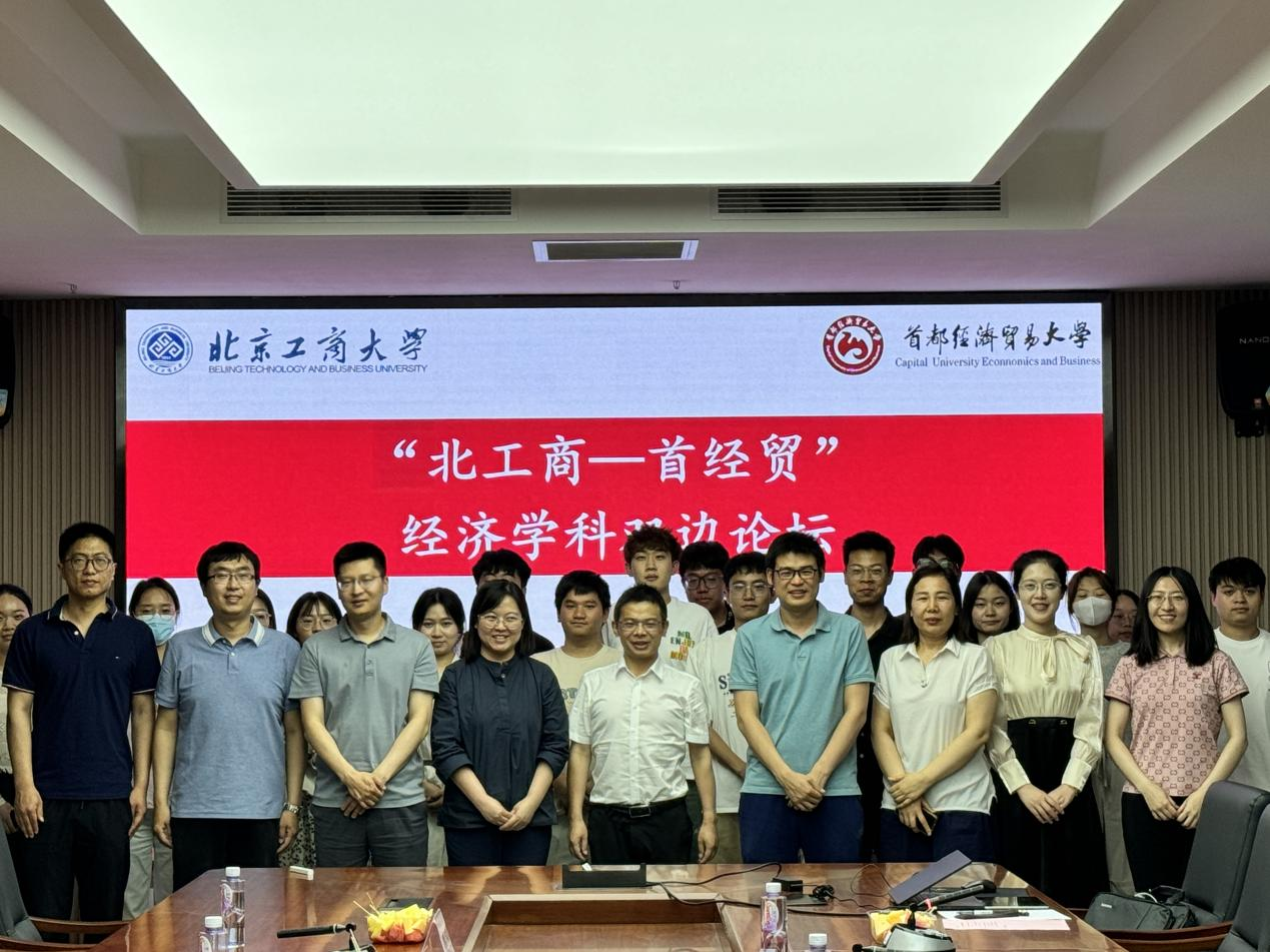 5月14日晚,“北工商-首经贸”经济学科双边论坛在北京工商大学良乡主校区举办。首都经济贸易大学经济学院院长杜雯翠教授、副院长杜鹏程教授、系主任王一子副教授、教师李兴申、张蒙,北京工商大学经济学院执行院长詹新宇教授、副院长许敬轩副教授、经济系主任陈真玲教授、金融系王爱萍副教授、经济系崔怡副教授和学院20余位研究生参加此次论坛交流活动。