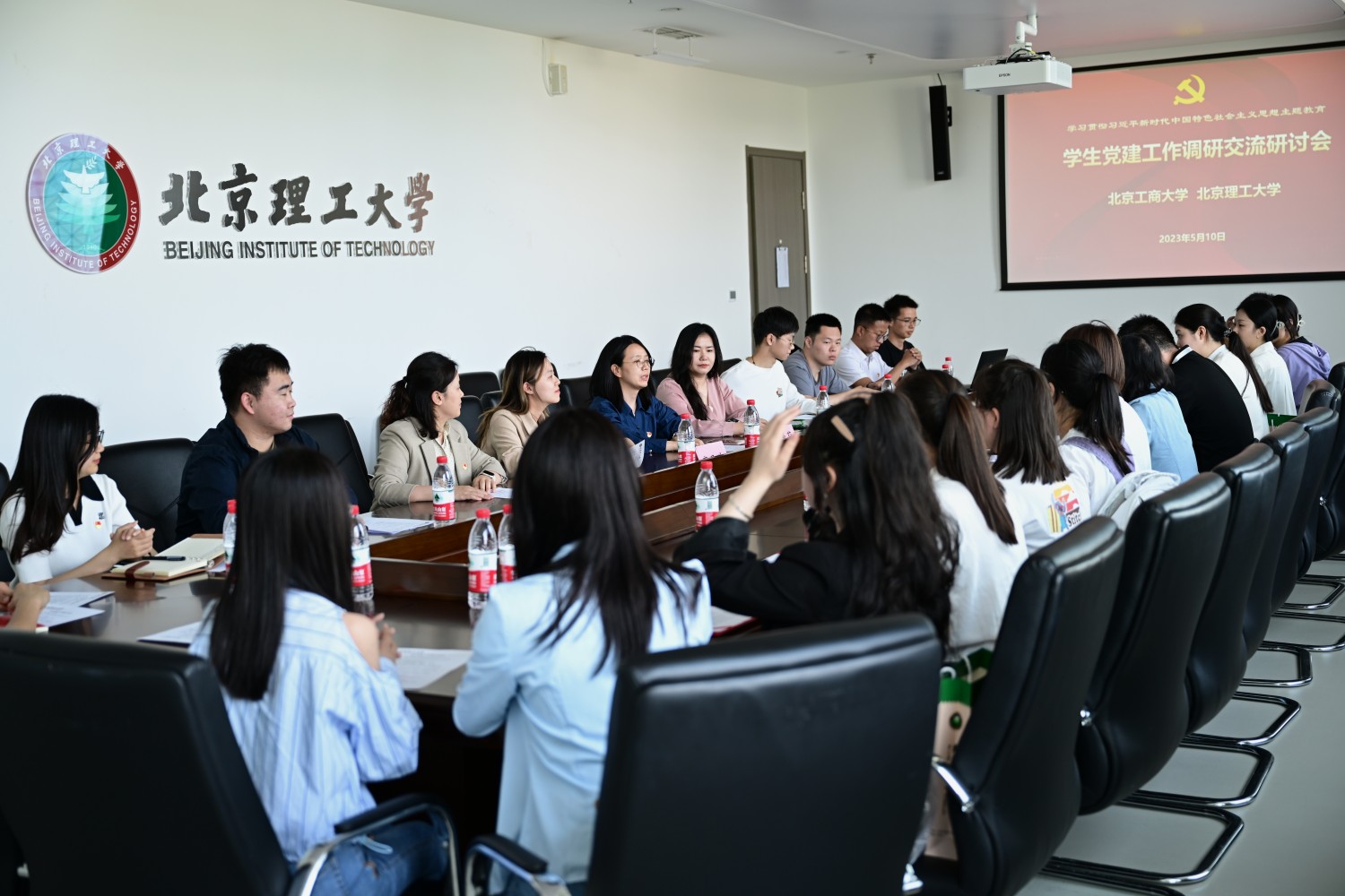 北京理工大学学生工作部副部长苟曼莉、学工部教师王晓静、杨菲、辅导员高子淇及部分学生党支部书记、青年宣讲团成员参加交流。苟曼莉对我校一行表示热烈欢迎,盖晓庆介绍了我校“求实”班的情况并就此次调研学习的目的做了说明。