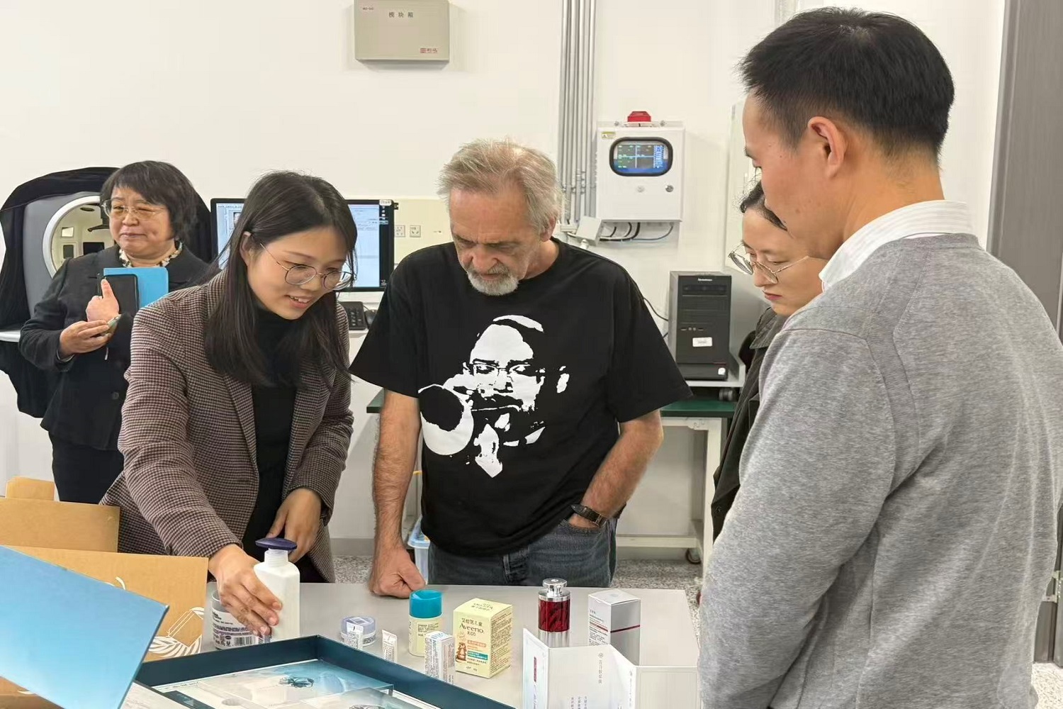 交流活动中,轻工科学与工程学院院长翁云宣与Speakman院士亲切交流,围绕轻工学院整体发展\生物基材料发展趋势,以及塑料制品与食品、化妆品领域的交叉研究可能性展开深入探讨。何聪芬教授分享了目前化妆品产业的挑战、精准护肤的核心科学问题以及对化妆品行业的关键作用。贾焱教授向Speakman院士汇报了团队最新研究成果。Speakman院士随即与大家展开充分讨论,并针对性提出指导意见。交流结束后,Speakman院士前往化妆品系实验室交流参观。