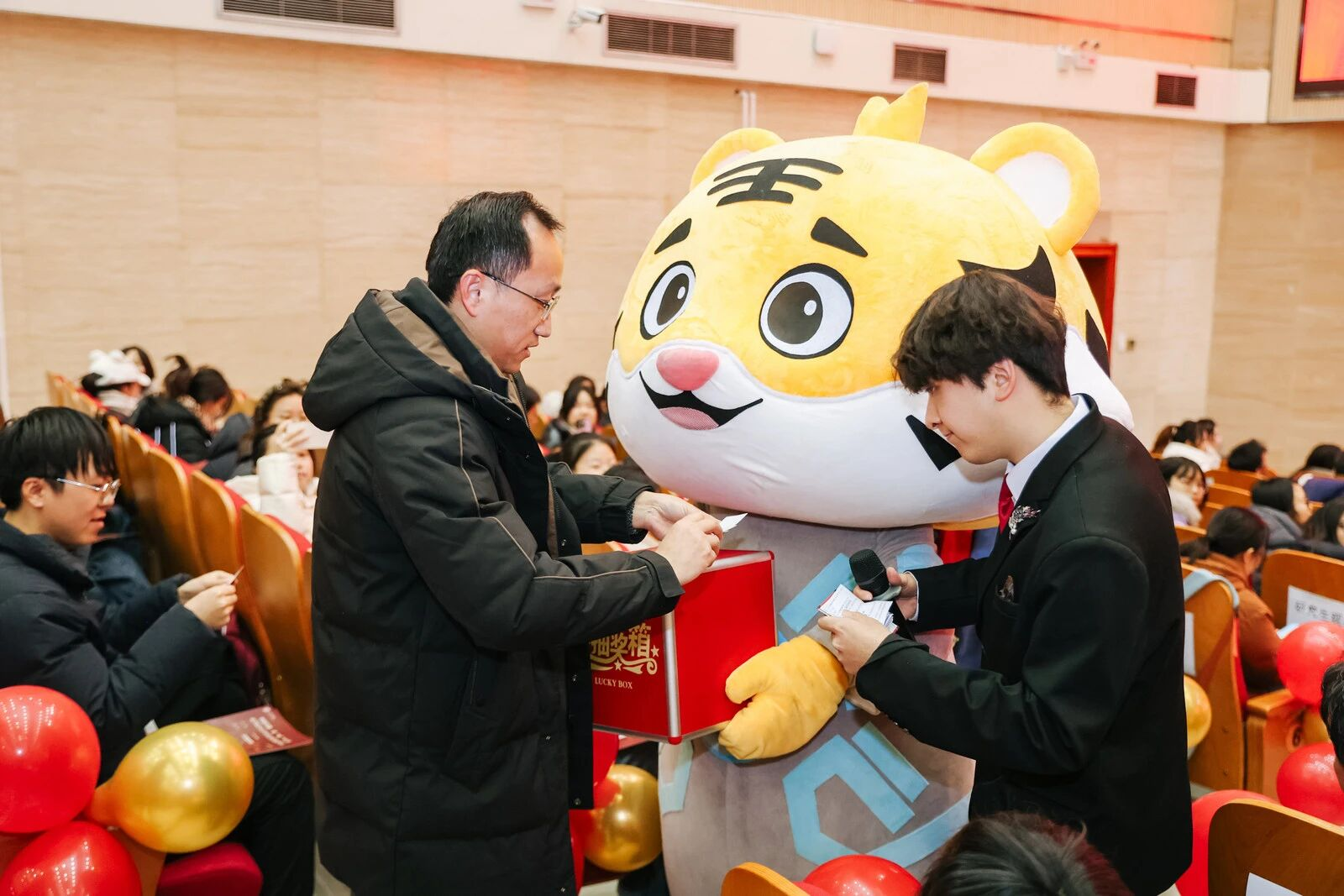 商学院党委书记樊江涛在讲话中代表学院党委,向获奖的优秀师生与先进集体致以热烈祝贺,向长期以来关心支持学院党建与思政工作的学校各职能部门表示衷心感谢。过去一年,学院党委坚持党的全面领导,全面落实立德树人根本任务,坚持“工商一体化”发展理念,以思想引领与党建赋能推动工作提质。全年开展各类学习教育活动60余场,实现党团员全覆盖;创新打造“行走的商院红”育人工程,组织师生走进10余个爱国主义教育基地、15个街道社区,让思政教育落地生根。宣传与文化建设成效显著,“BTBU商院之声”公众账号全年发文356篇、阅读量超41万次,文化IP“必晟虎”凝聚奋进力量,提升了文化辨识度与凝聚力。组织建设亮点突出,多个党支部获评校级“样板党支部”“先进党支部”,学院团委获“先锋杯”五四红旗团委,4个基层组织获评北京市优秀基层组织,全院形成学先进、争先锋的浓厚氛围。