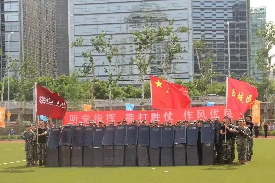 3月初学校民兵连正式受领西城区人民武装部下达的表演任务。学校领导高度重视,校党委副书记李中奇亲自动员部署,要求队员从夯实国家安全基础、彰显国防后备力量的高度最高标准完成训演工作。面对训学矛盾、两校区交通、伤病等重重困难,民兵队员牢记入队誓言,不怕牺牲,勇担重任。从晚冬微寒到初夏骄阳,从晨光熹微到月明星稀,从校园操场到基地训练场,烈日下、狂风中、沙尘里,民兵队员刻苦训练的身影永远不会缺席。“掉皮掉肉不掉队,流血流汗不流泪”。民兵连副指导员梁哲楷高烧39度依然不下火线,坚持在训练场上指挥;民兵班长田璐训练导致后背肌肉拉伤受伤,依然坚持指导班级队员训练;阜成路校区民兵负责人梁思雨阑尾炎手术还没拆线仍坚持参加合练。18次校内外集训,一次又一次地修改动作编排,一次又一次训练标准近乎“苛刻”的精益求精,全体队员没有退缩、没有抱怨,只有更加饱满的豪情和血性顽强拼搏,只为最后时刻的完美绽放,充分展现了我校大学生民兵的精气神!