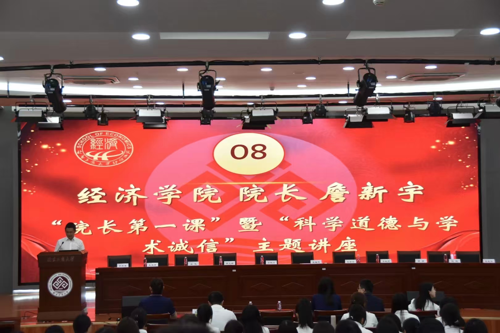 经济学院巧妙地将法纪教育与新生入学教育相结合,在迎新大会暨“院长第一课”上,以《研经求真:如何开展科研工作》为题,旗帜鲜明地划出学术道德的“红线”与“底线”,强调科研诚信的极端重要性。同时,学院党委紧扣新修订的《中国共产党纪律处分条例》,组织党员师生深入解读修订背景与核心内容,剖析典型违纪案例,并围绕“党纪与科研如何深度融合”“研究生党员如何在学术领域发挥先锋模范作用”等议题开展热烈讨论,推动党纪学习教育入脑入心、走深走实。