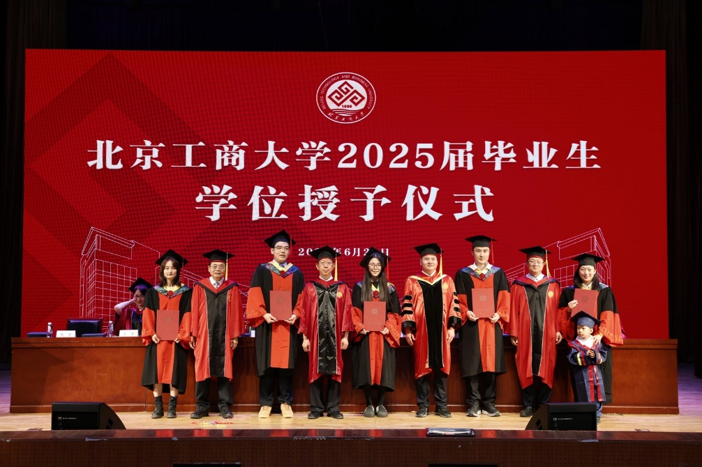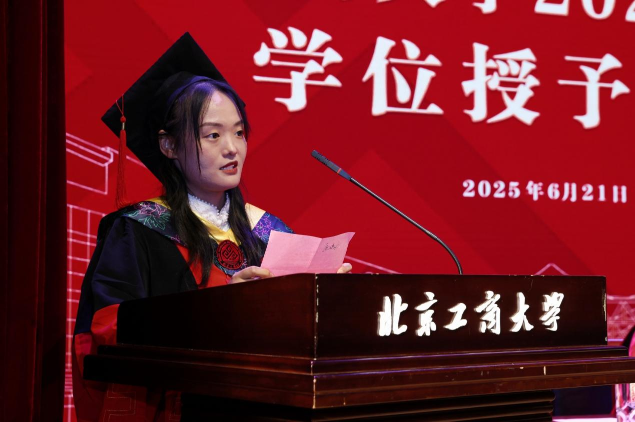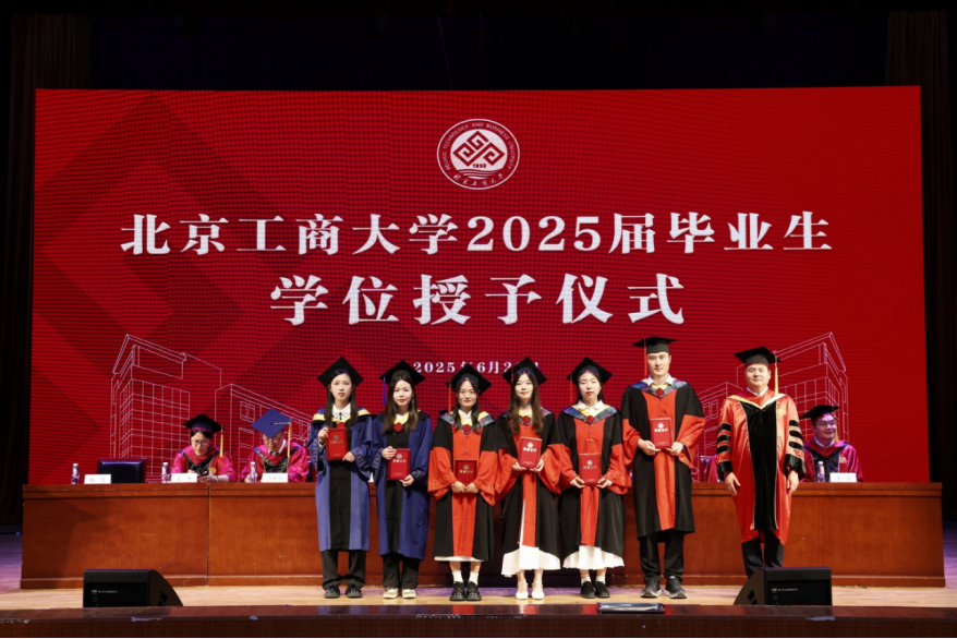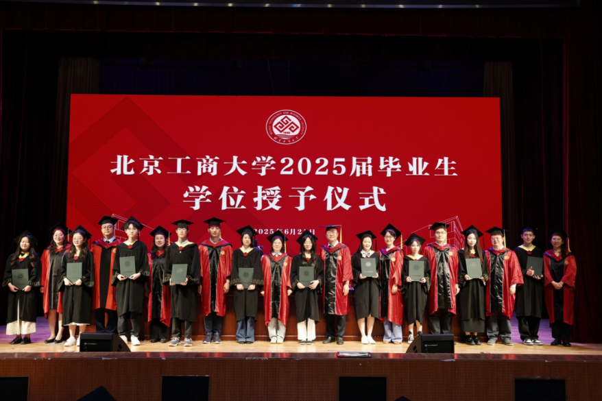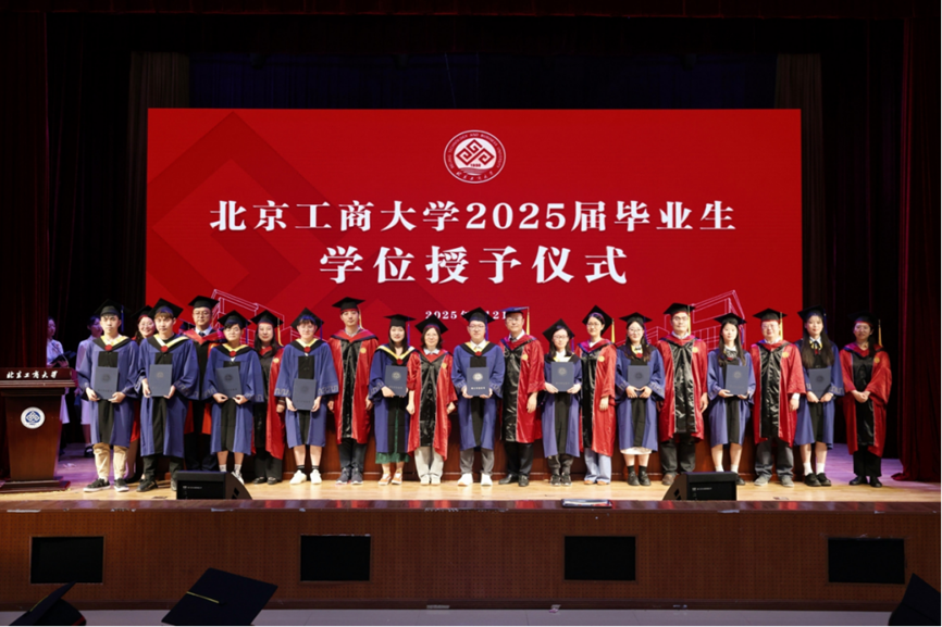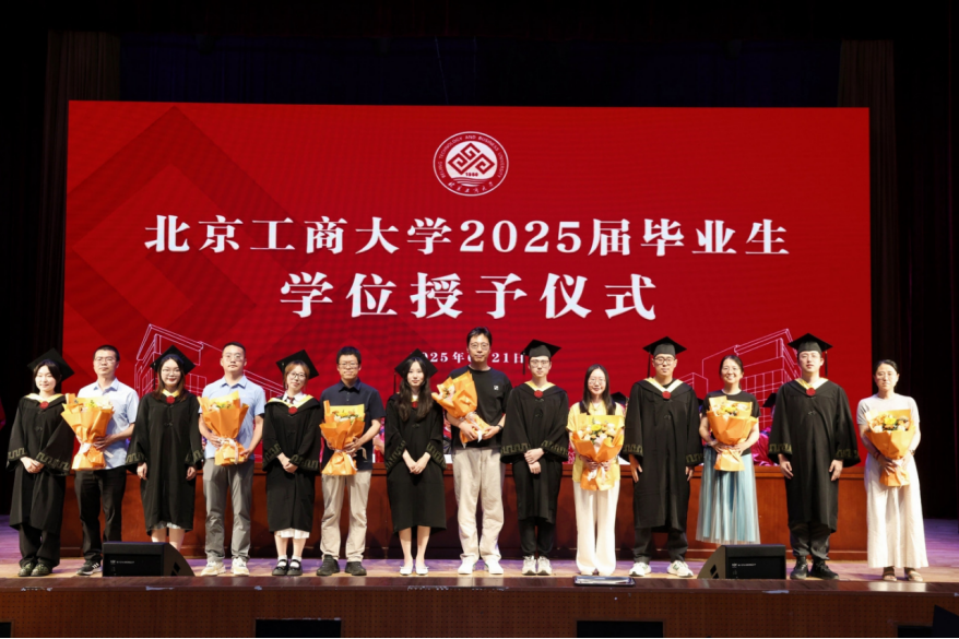 庄严的国歌奏响,毕业典礼正式开始。王彦波宣读《北京工商大学食品与健康学院关于2025届学生学位授予以及表彰优秀毕业生的决定》,学院共有422名毕业生获得学位,其中本科毕业生207名,硕士研究生189名,博士研究生26名(含5名留学生)。15人获“北京工商大学优秀本科毕业生”荣誉称号,18人获“北京工商大学优秀硕士研究生毕业生”荣誉称号,4人获“北京工商大学优秀博士研究生毕业生”荣誉称号,14人获“北京市优秀本科毕业生”荣誉称号,9人获“北京市优秀研究生毕业生”荣誉称号,2人获“北京市优秀博士毕业生”荣誉称号。