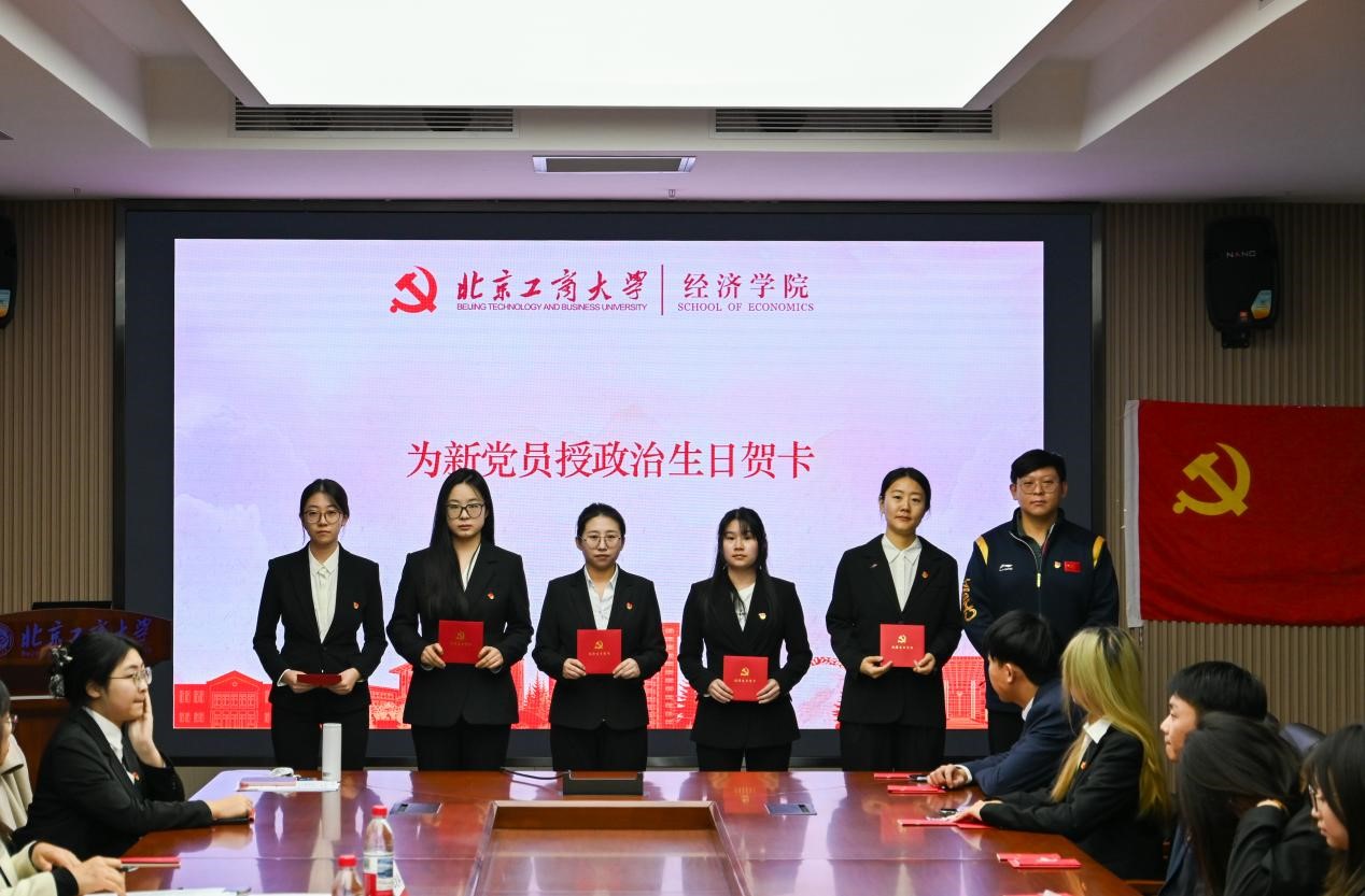 本科生党建工作室组织部负责人杨泽凯介绍学院2025年秋季学期发展对象培养考察情况。在学校党委和学院党委的坚强领导下,我院严格遵循党员发展工作的总体要求,持续优化积极分子培养考察机制,深化《北京工商大学经济学院积极分子“发展积分”制度》的实践运用,构建起多维立体、全程贯通的培养考察体系。秋季学期,经个人申请、组织谈话、积分评定、民主推荐、政治审查及集中培训等严格程序,39 名优秀发展对象在政治素养、作用发挥等方面表现突出,符合党员发展条件,经组织审批发展入党。这批新成员的加入,为党组织注入新的生机与活力。
