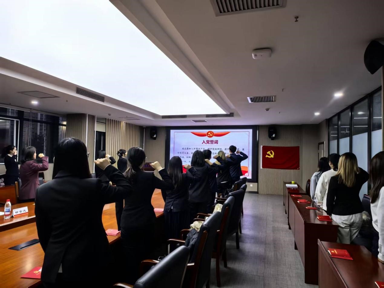 全体新党员在陈威豪的带领下,在党旗下拳拳向心,以清晰有力的声音向党宣誓。宣誓声铿锵有力,表达了对党的忠诚与承诺。