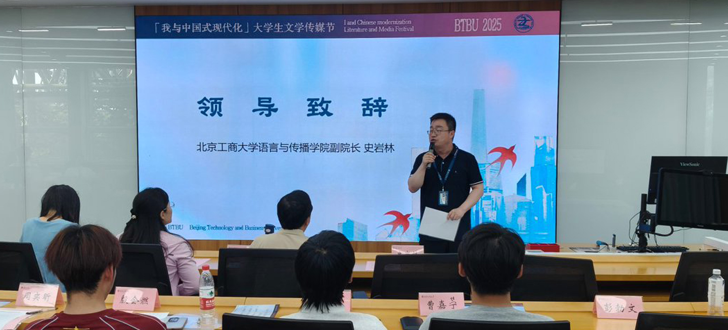 2025年6月18日,北京工商大学第四届“大学生文学传媒节”演讲比赛决赛在良乡校区师生服务中心203教室隆重举行。此次活动由语言与传播学院中文教研室、中国故事叙事研究中心主办,来自全校各个学院的10名选手在历经初赛、复赛选拔后齐聚一堂,以“我与中国式现代化”为主题,声情并茂地讲述了中国式现代化进程中的精彩故事,生动诠释了新时代青年对中国式现代化的深刻理解和独特感悟。