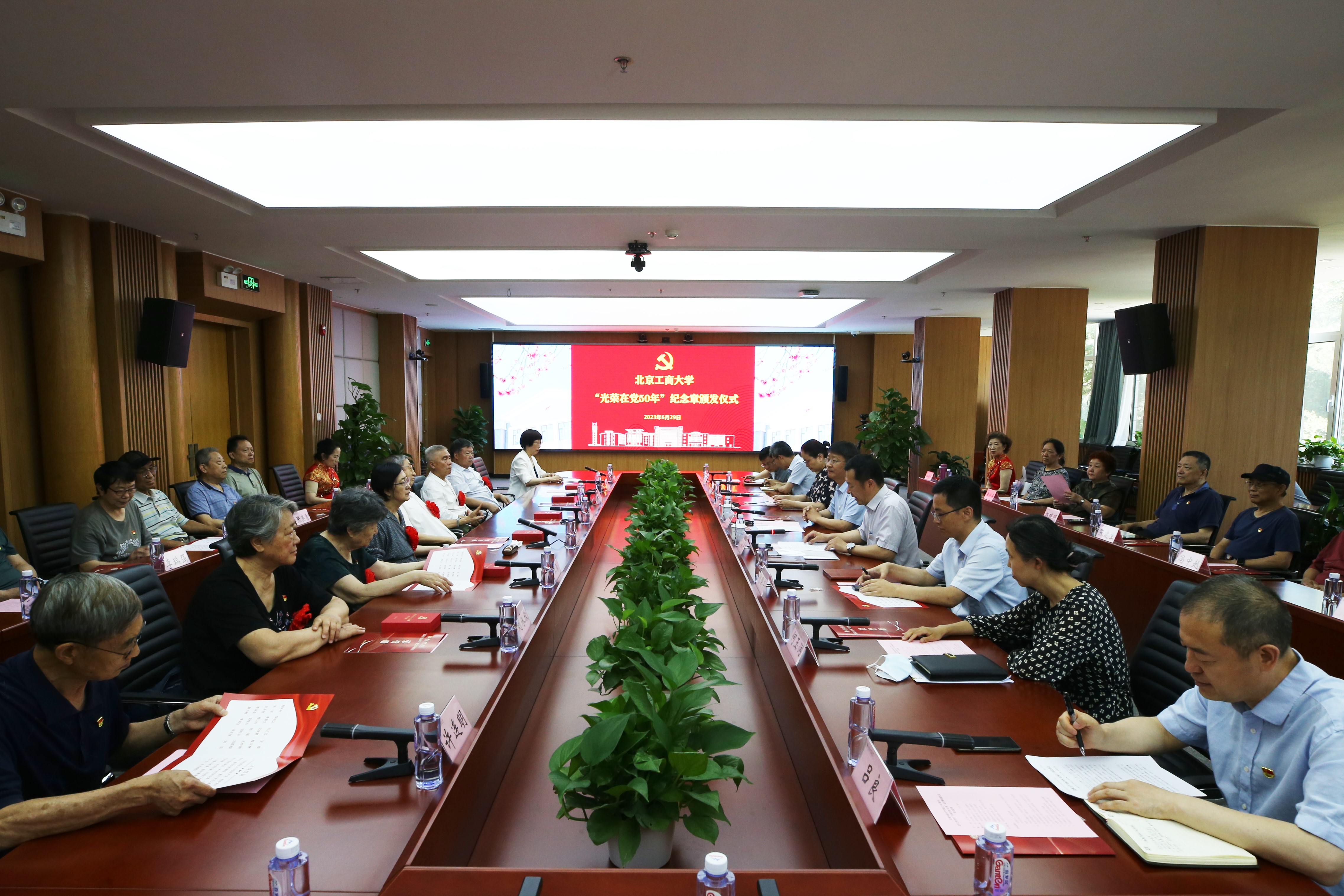 6月29日,学校在阜成路校区举行“光荣在党50年”纪念章颁发仪式。学校党委副书记、校长郭建华出席,“光荣在党50年”纪念章获得者代表、学校离退休工作领导小组全体成员、离退休党支部党员代表参加仪式,颁发仪式由学校党委常委、副校长刘敏华主持。