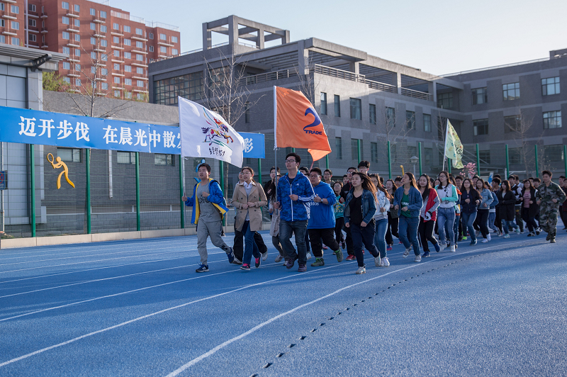 每天早上6点50,集中晨练的同学们有说有笑地来到操场,在班干部的带领下进行准备活动,或压压腿、或抻抻腰,也有的班级做广播操,随后便以饱满的精神跑步热身。同学们整齐的动作、强健有力的步伐展示了工商学子青春的朝气与活力。