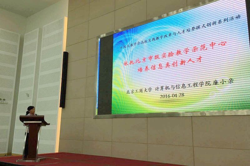 计算机与信息工程学院副院长廉小亲教授作为特邀专家,在“互联网+实验室”创新发展论坛上做了题为《依托北京市级实验教学示范中心培养信息类创新人才》的报告。她依托学校实验教学中心,从实验教学体系、教学方法及信息化建设等方面阐述了我校在人才培养过程中的思路及做法,并充分展示了学校人才培养的成果,得到相关领域参会者的共鸣,反响热烈。