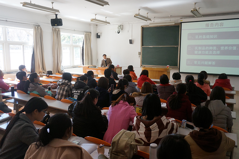 为了响应“健康中国”号召,满足学校教职工对健康生活的需求,校工会与食品学院分工会联合在三月份举办“食品营养,你想知道的事”系列讲座。系列讲座第一讲“乳制品的营养健康功效及选择”于3月1日在阜成路校区进行,100多位教工聆听了讲座,会议由校工会常务副主席田宏主持。