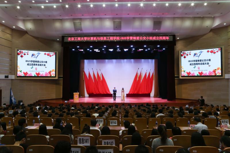 5月10日,“绿色出行 畅通北京”交通宣讲团大学生志愿者分团成立三周年暨北京工商大学计算机与信息工程学院iBUS学雷锋爱公交小组成立四周年总结大会在良乡校区举行。北京市交通宣传教育中心党支部书记郭群,我校副校长方德英出席大会,佛子庄乡中心小学副校长马雄英,计信学院党委书记陈谊、院长蔡强、党委副书记杨立功,以及各年级学生代表和佛子庄乡中心小学学生代表参加了活动。