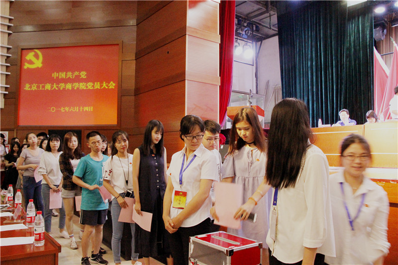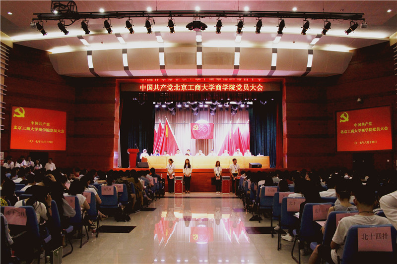 大会在庄严的国歌声中拉开帷幕。学校党委组织部副部长富斌宣读了学校党委《关于同意中共北京工商大学商学院召开党员大会的批复》。