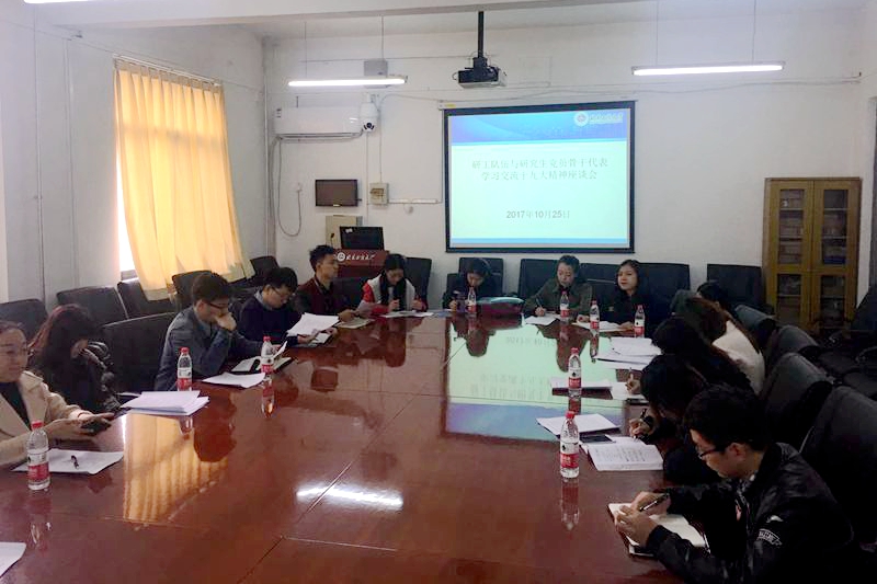 10月25日上午,研工部召开了研工队伍与研究生党员骨干代表学习交流十九大精神座谈会,交流收看大会的心得体会。研究生院副院长兼研工部副部长熊慧、各学院研究生辅导员及研究生党员骨干参加会议。