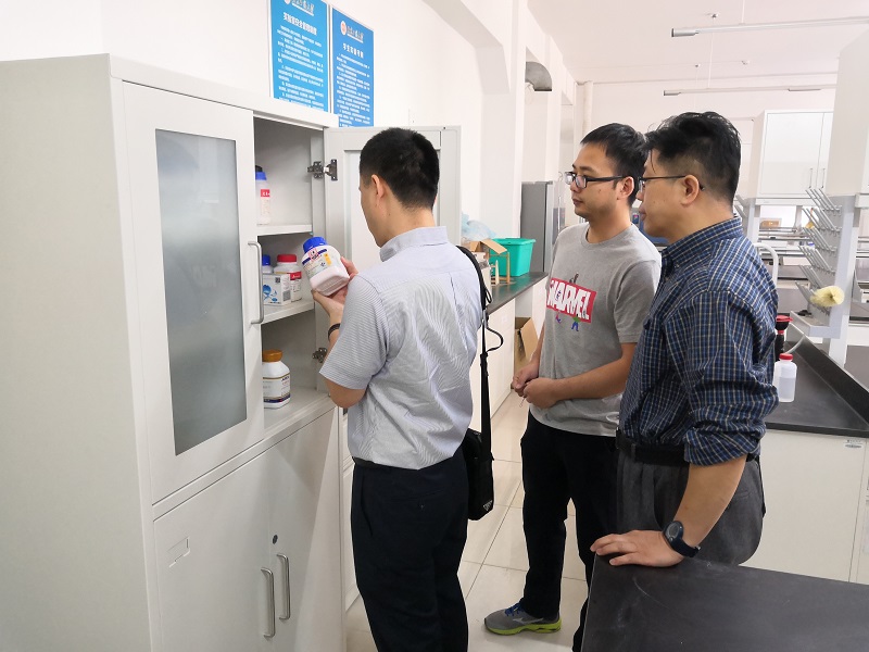 张耘副校长和有关单位陪同检查组王俊杰实地检查了学校化工楼实验室、网络中心、学生食堂、学生宿舍、学校应急指挥中心等地点,对实验室危化物品采购、存储、使用情况、学生食堂食品安全、学生宿舍用电和学校技防设施使用等方面的情况进行了深入了解和检查。