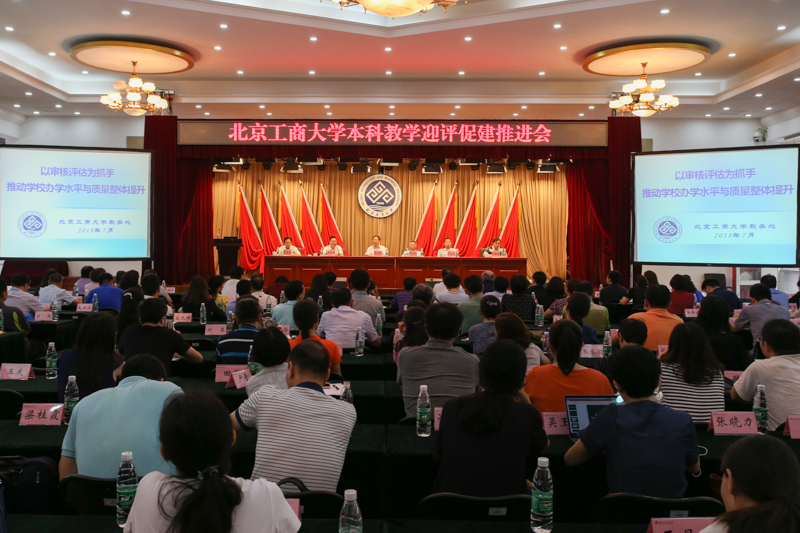 孙宝国校长做总结讲话,他深刻分析了本科教学工作及其本科教学审核评估的重要性,对学校扎扎实实的推进迎评促建工作和取得的成效予以肯定。他指出:第一,今年学校最重要的工作就是迎接本科教学审核评估,要充分认识到本科教学审核评估的重要性。审核评估是对我校人才培养质量的一次全面检验,是健全我校人才培养质量体系的有力抓手,关乎学校的社会影响和办学声誉,关乎学校获得的社会资源和政府资源。第二,全校各部门和各教学单位要严格按照学校审核评估的工作部署,调动全体师生员工迎评促建的工作积极性,把各项工作落实到位,要把北京工商大学最好的一面,最亮丽的一面展现给专家组,充分展示我校本科教学的质量和人才培养的成果。