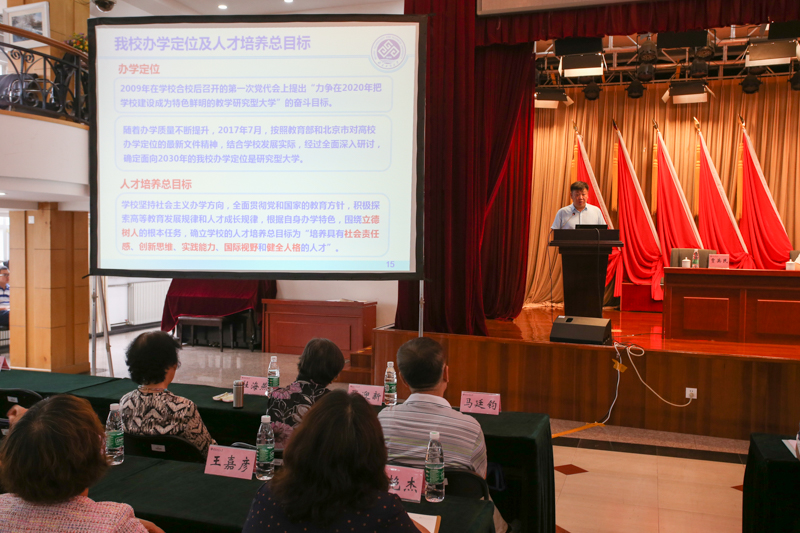 7月13日,学校在阜成路校区召开本科教学迎评促建推进会,校长孙宝国、副校长谢志华、李朝鲜、郑文红、贾英民、方德英出席会议,学校本科教学督导专家组代表、全体中层干部,各系主任,教学秘书,教务处工作人员参加会议。会议由李朝鲜副校长主持。