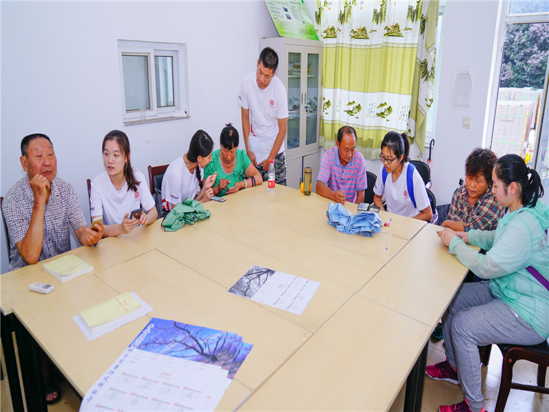一部分成员在梯子峪村村委会与村民们进行了面对面地互联网营销课程交流。大家提前认真地学习了如何注册和经营网上电商,并逐一帮助村民们建立网店。村民们对于网店的经营表现出了极大的兴趣,积极主动地向实践团员们咨询经营网店的方法与技巧,并对实践团成员的帮助表示认可与感谢。