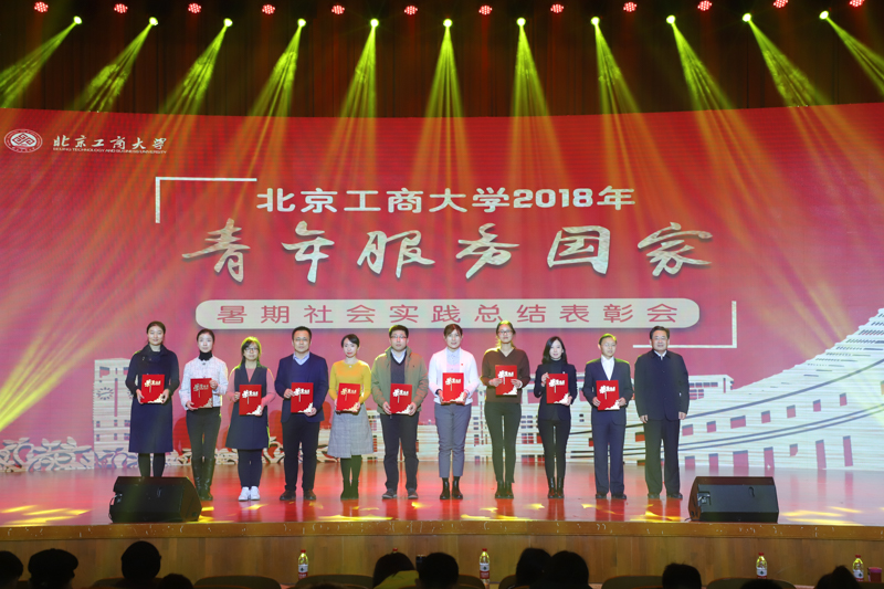 校团委书记王海伟宣读了《关于表彰北京工商大学2018年“青年服务国家”暑期社会实践优秀团队和个人的决定》,与会领导为获得暑期社会实践优秀团队、先进个人、先进工作者的集体和个人颁奖。