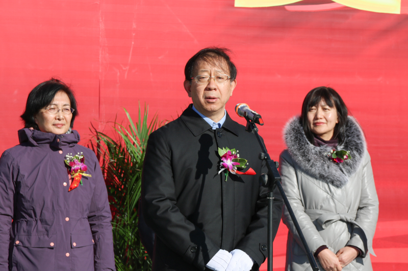 校长孙宝国院士在仪式上致辞。他代表学校党委和行政、代表党委书记谭向勇教授向参加新建工程奠基仪式的各位领导、来宾和师生代表表示热烈的欢迎和衷心的感谢。他谈到,2018年是学校历史上不平凡的一年,学校获批博士学位授予单位,应用经济学、食品科学与工程获得一级学科博士学位授权点,实现了几代北工商人梦寐以求的愿望;2019年,将迎来建国70周年,也是学校“十三五”发展的决胜之年。良乡校区新建工程的建设为北京工商大学未来的腾飞插上了翅膀。下一个阶段施工任务更加艰巨,他希望各参建单位要牢记质量意识、安全意识,做到精诚团结,精细管理,精心施工,同北京工商大学一起凝心聚力,抢抓机遇,加快建设具有商科、食品和轻工为特色的高水平研究型大学,为首都经济社会发展做出更大的贡献!