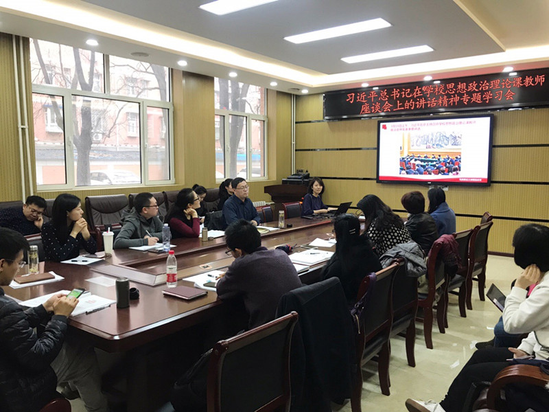 3月18日,中共中央总书记、国家主席、中央军委主席习近平在京主持召开学校思想政治理论课教师座谈会并发表重要讲话。习近平总书记的重要讲话在我校思政课教师中引起热烈反响和强烈共鸣。为学习贯彻会议精神,领会习近平总书记重要讲话的精神实质和深刻内涵,扎实推进思政课教师队伍建设和课程改革创新,增强办好思政课的思想自觉和行动自觉,3月20下午,马克思主义学院在阜成路校区举行习近平总书记在学校思想政治理论课教师座谈会上的重要讲话精神专题学习会。会议由马克思主义学院副院长姚洪越主持。