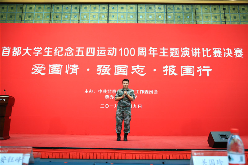 比赛中,历经层层选拔脱颖而出的首都高校15名决赛选手结合亲身经历,讲述自己对五四精神的理解、对爱国主义的体会、对青年使命的感悟。我校选手王巡东曾是一名光荣的野战军士兵,他戎装一身,英姿飒爽,以《携笔从戎酬壮志 护国卫民勇争先》为题,结合自身从军入伍的经历、保家卫国的精神、退伍不褪色的热情,进行了一场激情满怀、铿锵有力的演讲,充分展示了北工商青年的风采,“国防建设,我必到,人民需要,我必到,祖国召唤,我必到”的英勇宣誓更是扣动了现场每一位观众的心弦,得到专业评委和大众评审的高度认可,获得了在场观众的热烈掌声。最终经评审团评审,王巡东脱颖而出,以第一名的成绩获得决赛一等奖。