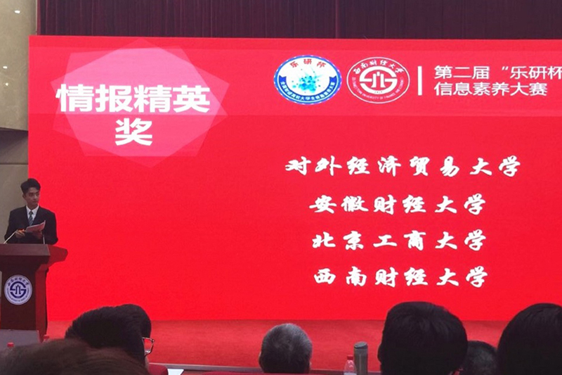 5月18日,第二届“乐研杯”全国财经高校大学生信息素养大赛全国总决赛在西南财经大学落下帷幕,由我校经济学院刘文婕、杨荟瑞、陈盛涛3位同学组成的参赛团队,与来自全国其他40所财经高校代表队同台竞技,荣获全国总决赛三等奖和“情报精英奖”,学校图书馆获得优秀组织奖。