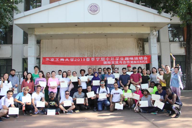 5月22日,2019中外留学生趣味运动会在阜成路东区操场举办,中外学生近60人参与比赛。
