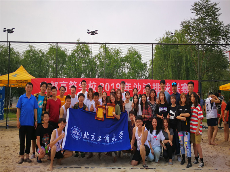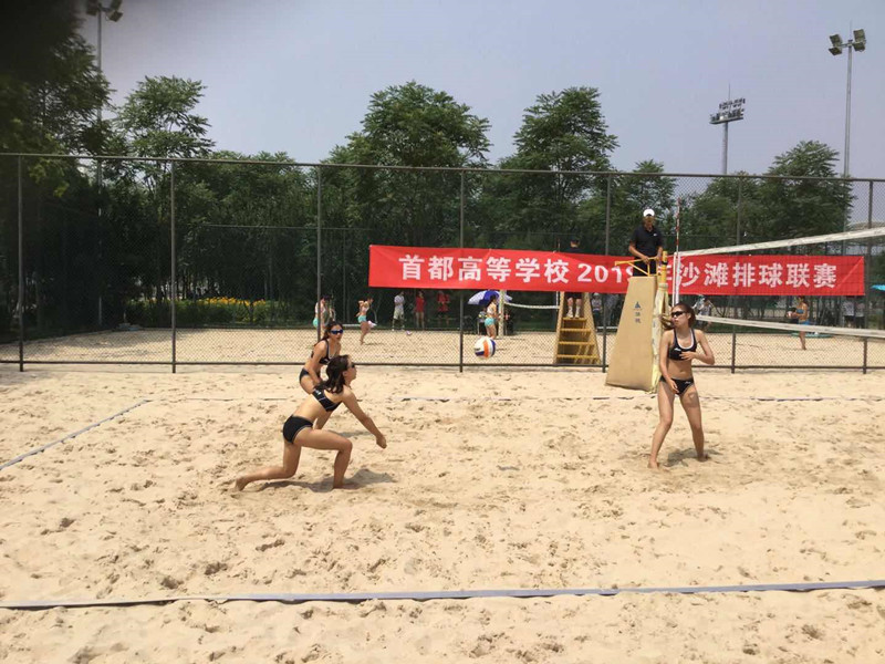 首都高等学校2019年阳光体育沙滩排球联赛于6月7日在中央财经大学落下帷幕,来自25所高校的62支代表队参赛。我校男排在教练员王然与范红松老师的带领下、女排在教练员陈新与刘昌明老师的带领下双双获得乙组冠军。我校男女排球队在以往的比赛中分别获得过冠军,但同时获得冠军这是第一次。