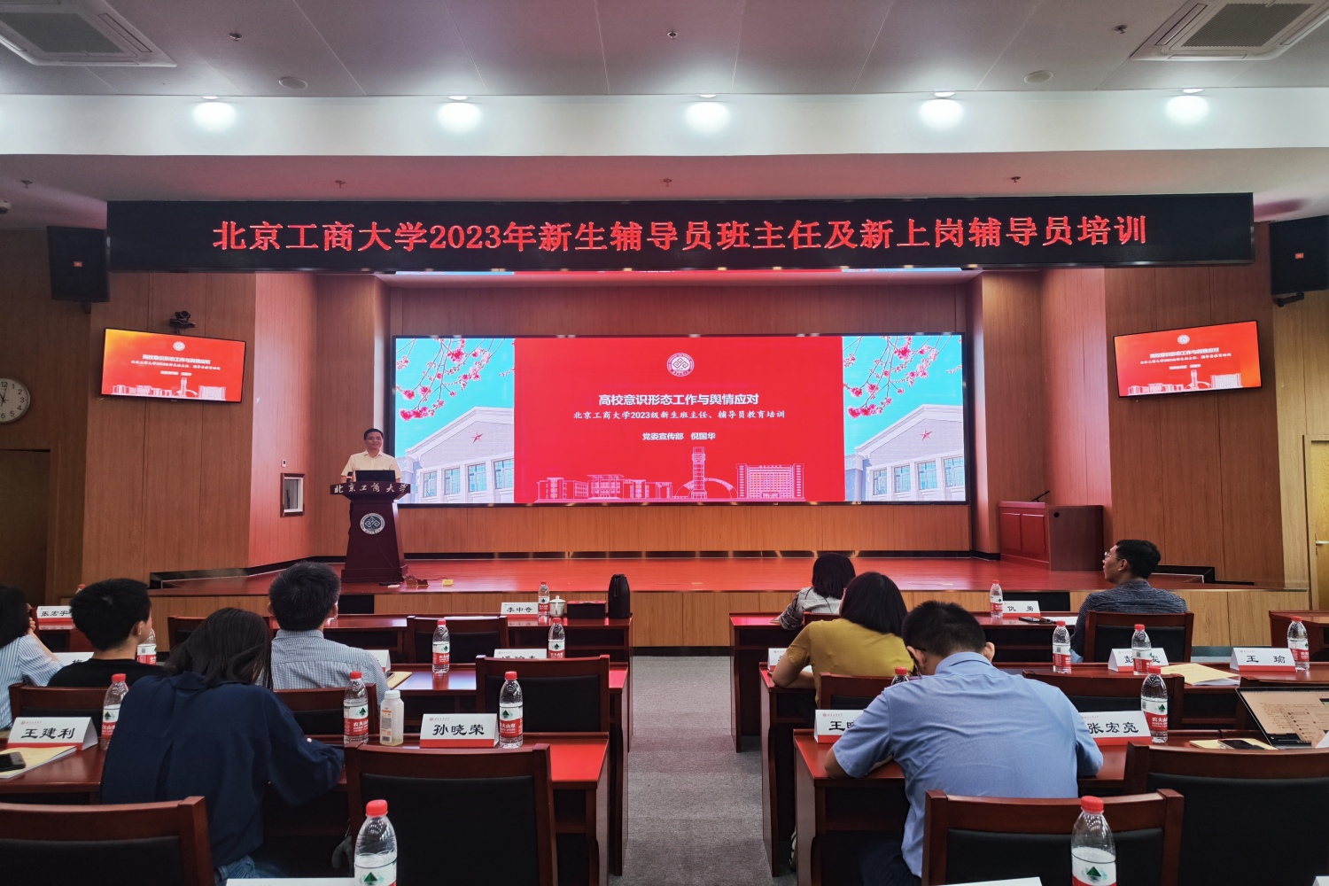 8月31日,学校2023年新生班主任辅导员培训在阜成路校区举办。本次培训内容涵盖学工队伍落实立德树人的使命担当、优秀班主任工作经验分享、大学生心理健康教育、意识形态工作与舆情应对、阶梯式思想政治教育及迎新工作安排等,来自各学院的130余名新生班主任、辅导员,以及2023年新上岗的辅导员参加培训,会议由学生处处长吕良主持。
