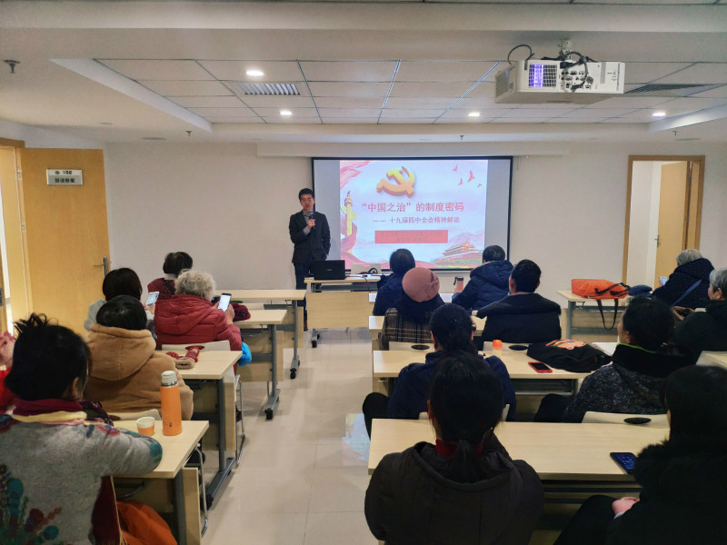 12月11日下午,马克思主义学院院长助理、副教授袁雷赴北京乾成律师事务所开展以“加强制度建设,推进四个伟大”为题的首场宣讲。12月24日,学院院长王鲁娜在2019年我校教师理论培训班上为全校青年教师做了题为“发挥制度优势、坚定制度自信”的专题报告,副院长姚洪越与大家交流了深入学习习近平同志关于民族宗教工作重要论述的体会;同日,学校举行《致知学堂》第二十五讲讲座,院长助理张彦琛以“学习贯彻党的十九届四中全会精神,坚定中国特色社会主义制度自信”为题为全校学生作报告,引领同学们学习贯彻党的十九届四中全会精神,坚定中国特色社会主义制度自信,学校本科生、研究生800余人聆听了宣讲;此外,由15名学院专业教师组成的宣讲团赴北京经济技术开发区新时代文明实践中心开展了20余场党的十九届四中全会精神特色宣讲活动。老师们深入改革发展和生产生活的第一线,宣讲单位包括亦庄开发区的政府机关、国有企业、民营企业和街道社区。基层群众普遍反映宣讲形式生动活泼,宣讲内容详实深入,契合大家的理论学习需要,解答了大家的思想困惑。