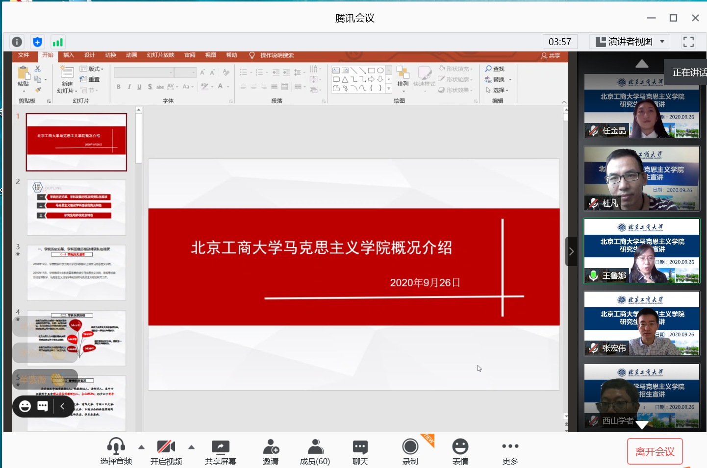 马克思主义学院院长王鲁娜就学院的历史沿革、师资队伍、马克思主义理论学科建设、学院研究生培养的特色与优势进行了整体介绍,强调了学院的师资力量和学科建设在服务首都“四个中心”建设的优势和特点。