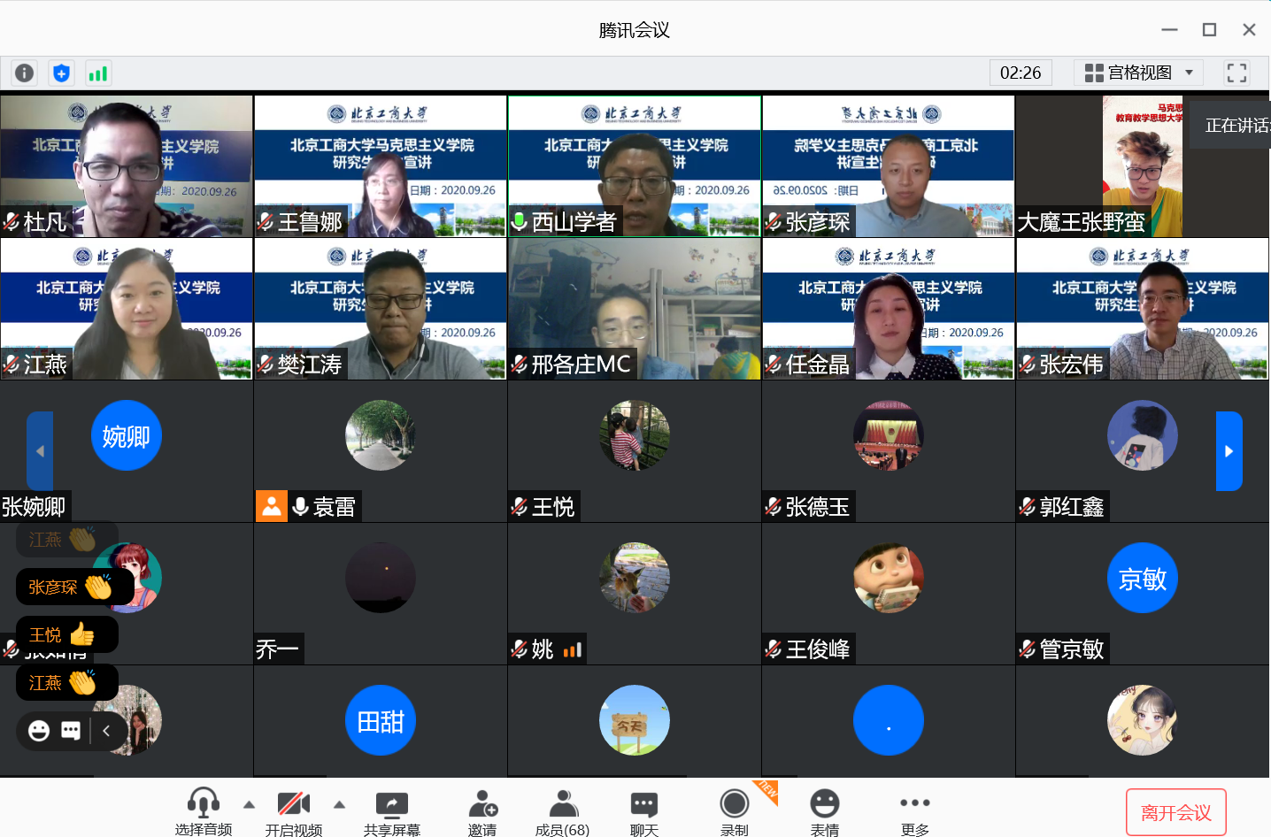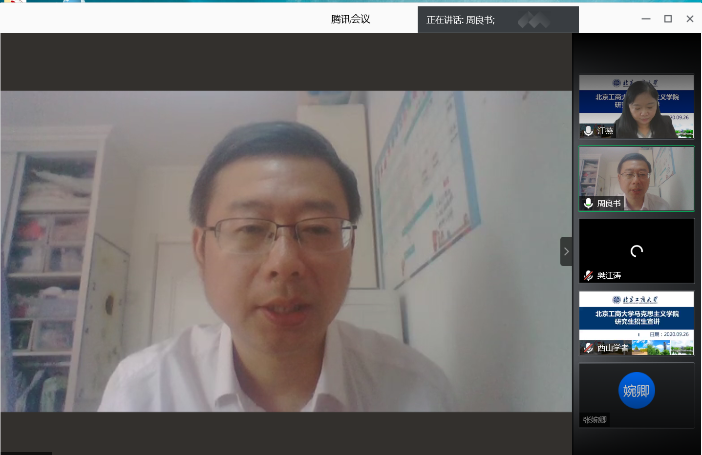 9月26日上午,马克思主义学院通过线上举办我校2021年研究生招生宣讲会。学校党委副书记张德玉出席会议,学院党总支书记任金晶,院长王鲁娜,党总支副书记樊江涛,副院长姚洪越、江燕,学院各专业负责人参加宣讲会。会议共吸引有报考意愿的学子、家长共计70余人参加。宣讲会由开幕式、马克思主义理论学科和专业介绍、学生学习和就业情况介绍三个阶段组成。