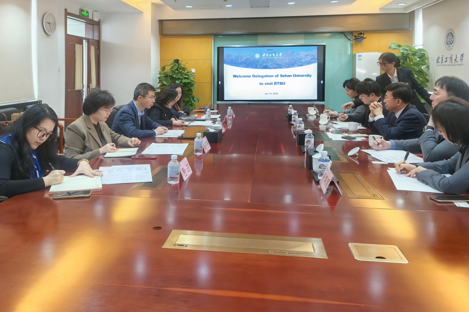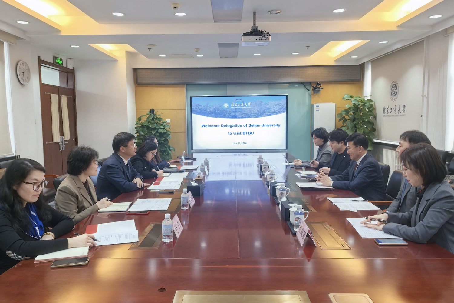 1月19日上午,韩国世翰大学名誉校长李昇勋一行访问我校。我校党委副书记、校长郭建华在阜成路校区会见了李昇勋一行;党委常委、副校长毛新述与代表团进行了会谈。