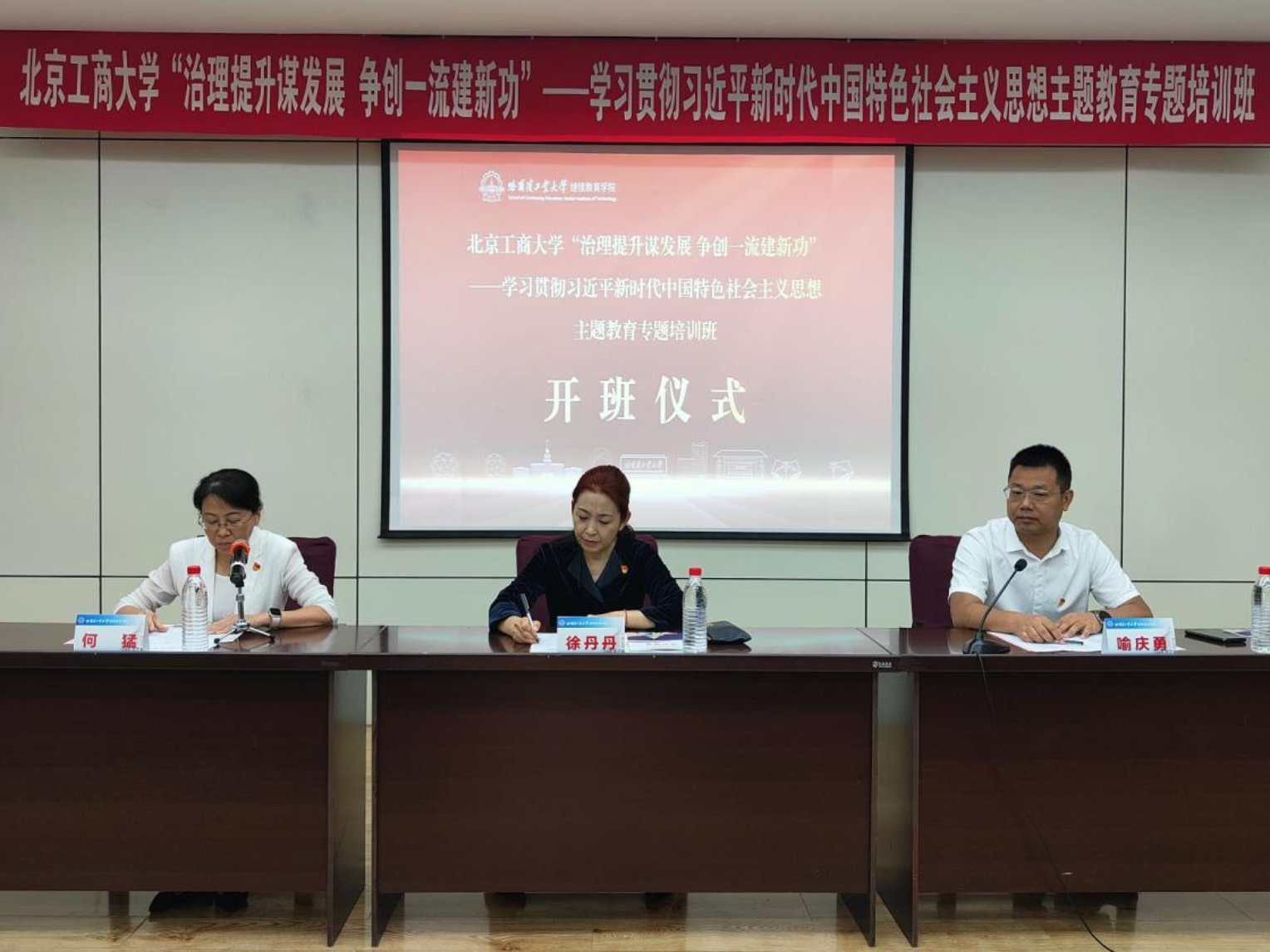 7月17日上午,培训班举行开班仪式。哈尔滨工业大学继续教育学院常务副院长、全国干部教育培训哈工大基地管理办公室主任喻庆勇致辞,对我校培训班一行表示欢迎,并介绍了哈尔滨工业大学的历史沿革、优势特色和杰出人才培养、“国之重器”打造和继续教育发展等概况,以及此次培训的学习安排等。徐丹丹作动员讲话,感谢哈尔滨工业大学精心安排培训课程,选派优秀师资授课,希望参加培训的干部以此次培训为契机,加强两校交流与合作,学习借鉴哈工大建校百年来的优秀办学传统和办学治校宝贵经验。同时对全体学员提出三点要求:一是要珍惜学习机会,学有所思,展现新面貌。二是要严守学习纪律,学有所得,斩获新成效。三是提升履职能力,学有所成,实现新作为。希望大家通过培训学习,深入学习贯彻习近平新时代中国特色社会主义思想,坚持学思用贯通、知信行统一,结合学校发展认真思考交流,围绕推进工作中的堵点卡点、破题破局的关键点突破点,学到经验、学出思路、学出实效,切实做到“以学铸魂、以学增智、以学正风、以学促干”。