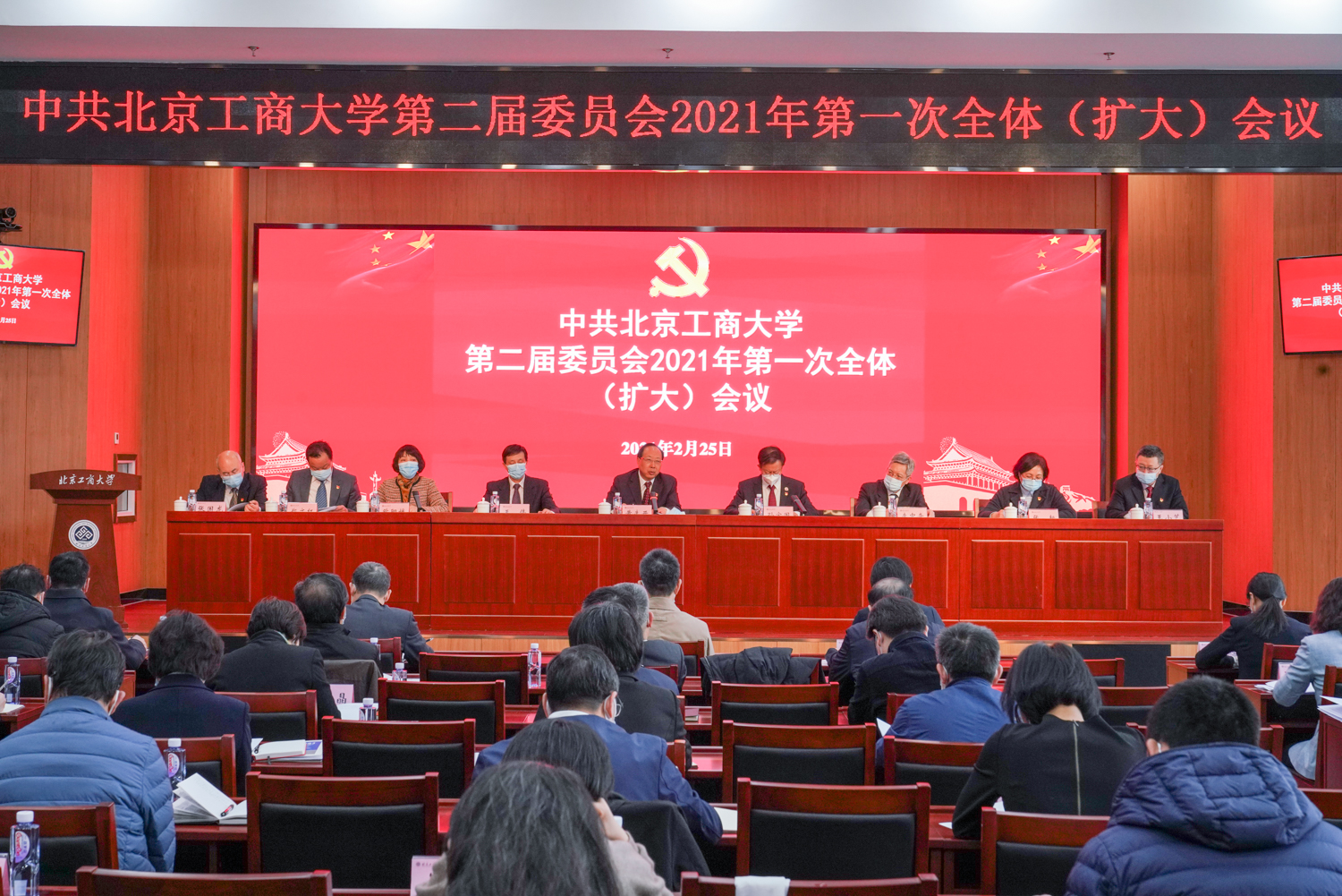2月25日,中共北京工商大学第二届委员会2021年第一次全体(扩大)会议在阜成路校区召开,全面总结2020年学校党委工作,研究部署下一步工作任务。全体校领导、党委委员、中层干部参加会议。会议由党委书记黄先开主持。
