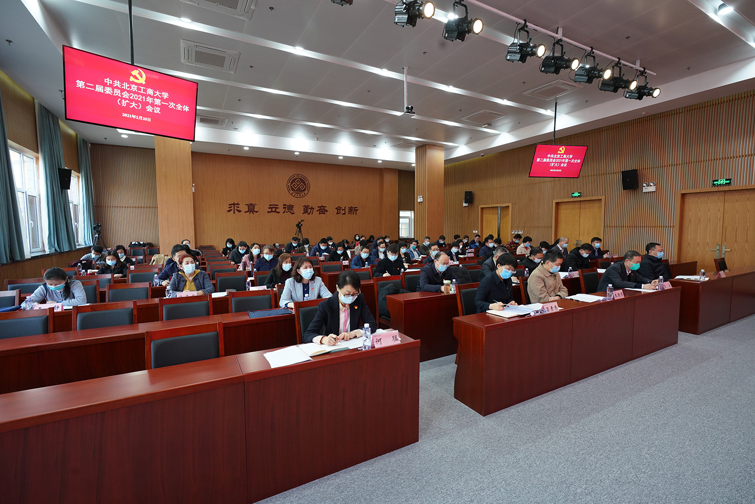 会议审议通过了《中国共产党北京工商大学第二届委员会2021年第一次全体委员(扩大)会议工作报告》,充分肯定了2020年学校各项事业取得的进展和成效,并立足新形势新要求,提出了下一步工作方向。会议号召,全体教职员工要在学校党委带领下,凝心聚力、开拓进取、攻坚克难、真抓实干,加快推进高水平研究型大学建设,以优异成绩迎接建党100周年。